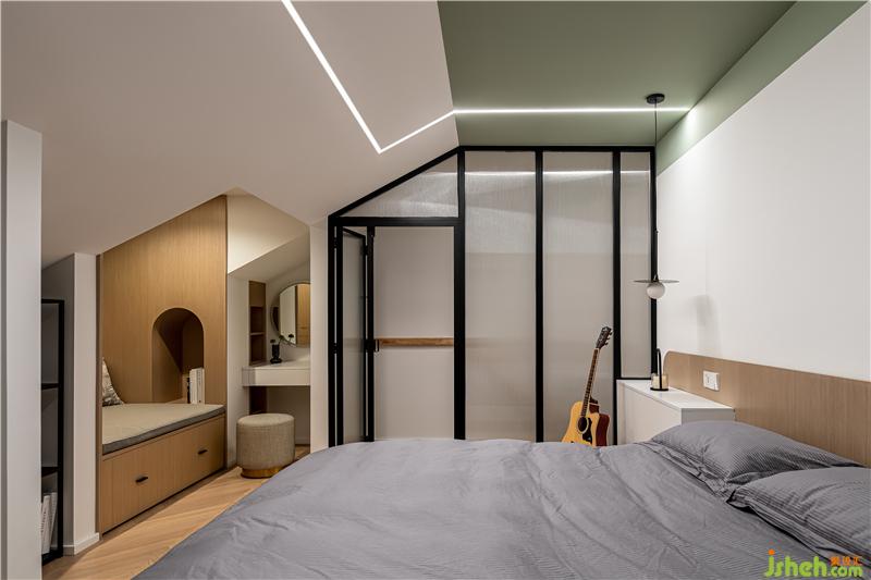 整面金属+长虹玻璃隔断,作为隔墙,在有限的局促空间内,使用双扇折叠门.