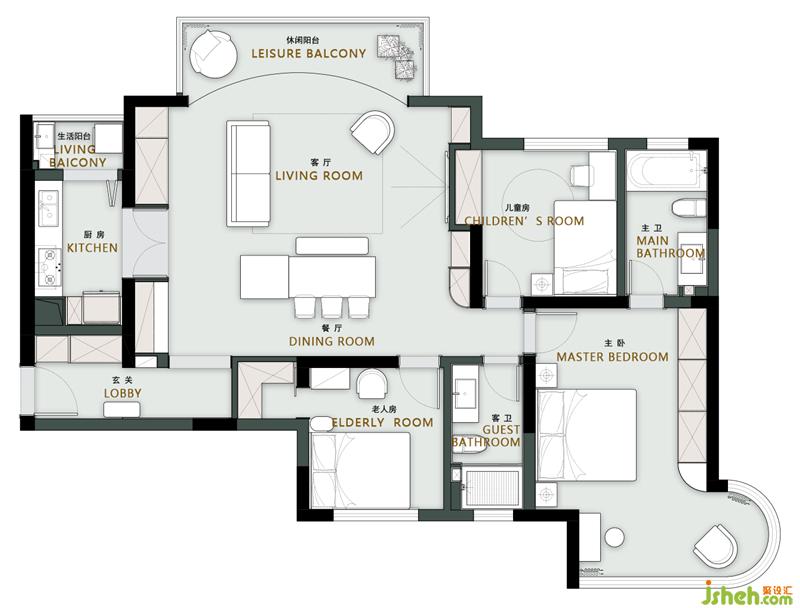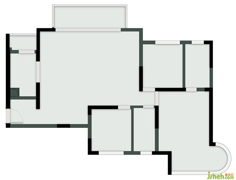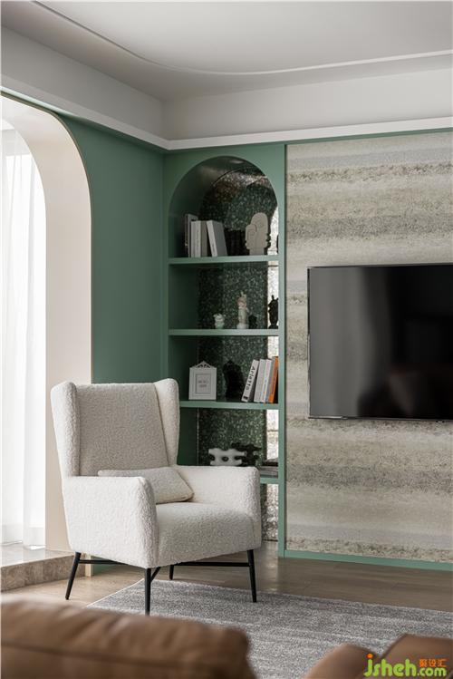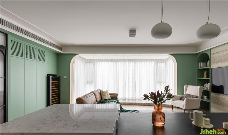 1. 阳台三面落地,视野无敌,弧形地台的形式,将阳台纳入客厅.