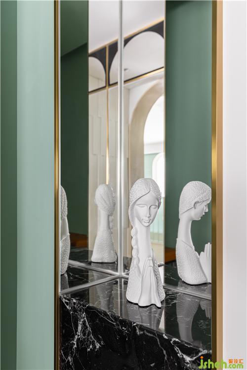 大理石雕塑台与金属镜面的组合,让空间感更加丰富.