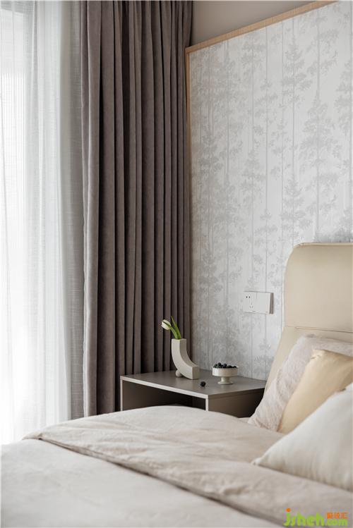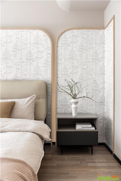 进口森林树木壁纸,带给主卧清新的自然气息.