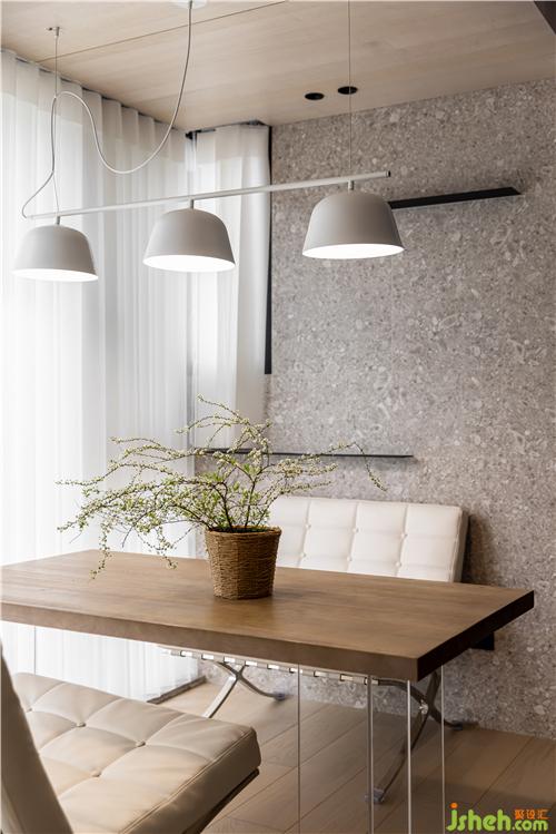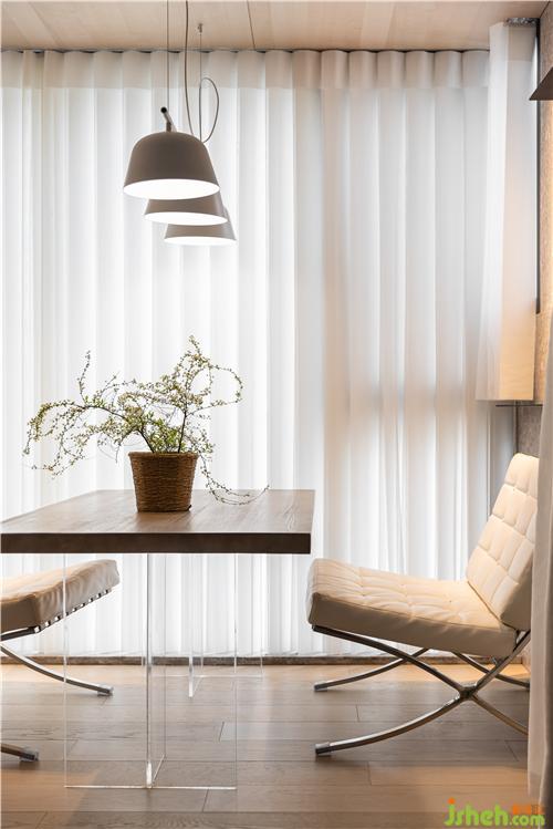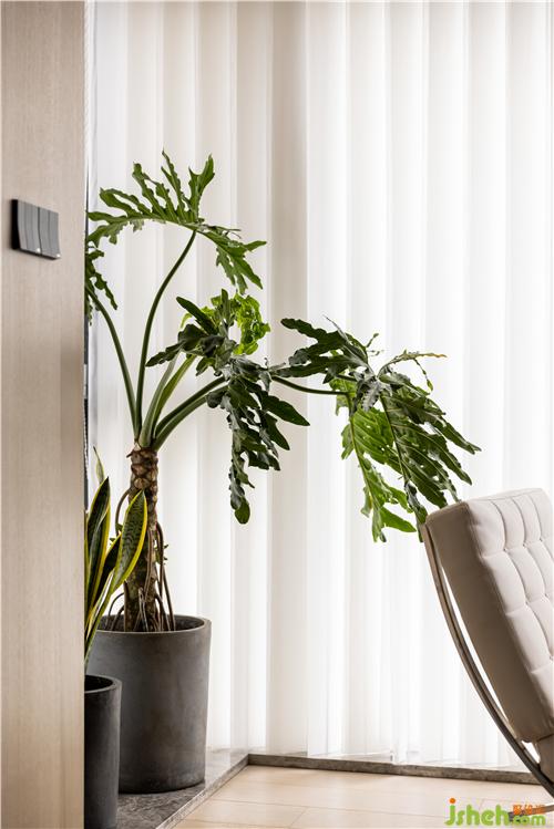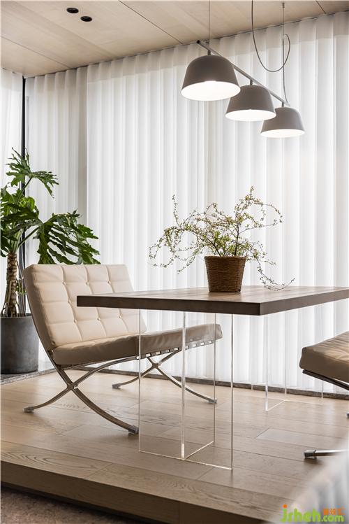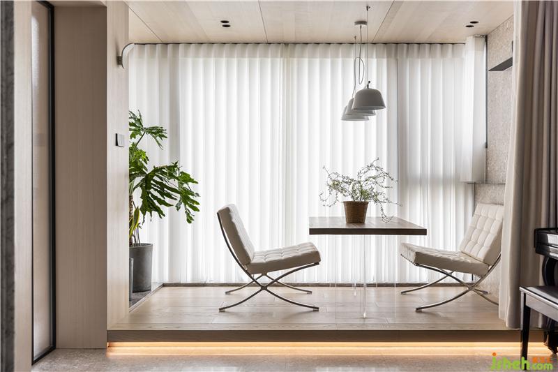 晨曦或午后,光线从白色梦幻帘穿透到室内,暖色木饰面在灯光的映衬下为空间增添温度,休闲沙发桌椅组合的配置,丰富了休闲阳台的功能.