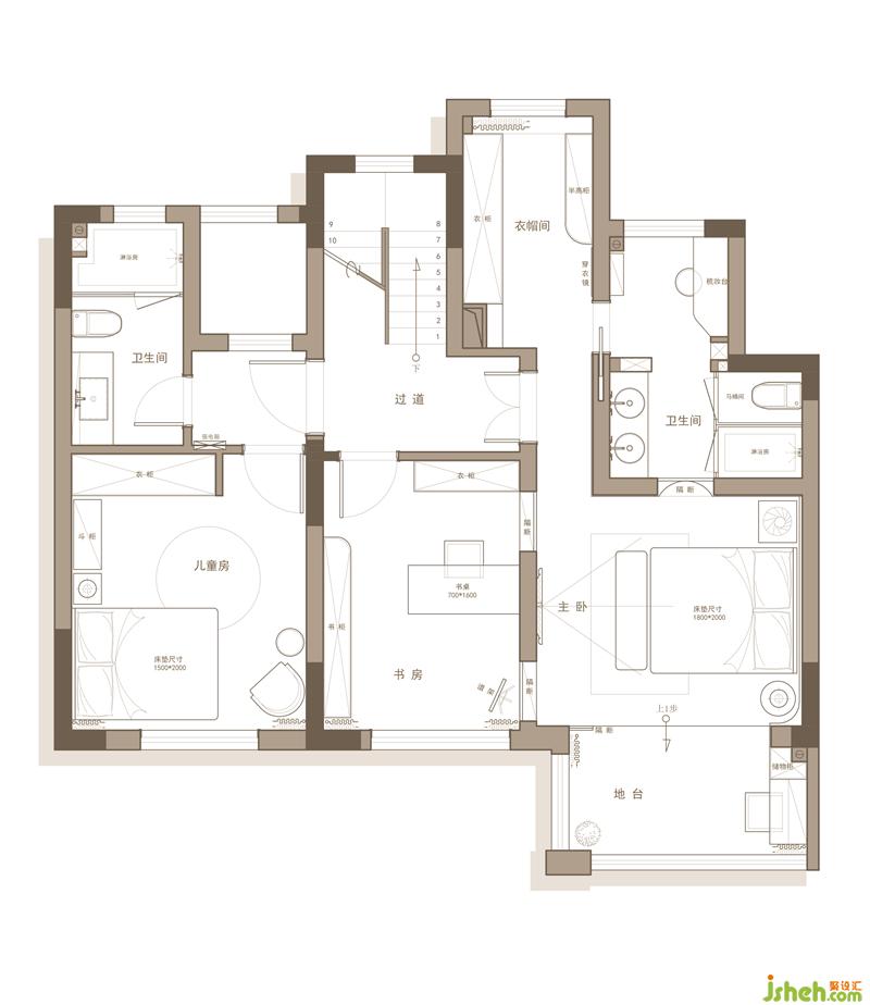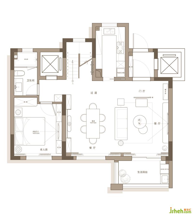 2.砸掉阳台的墙体,阳台纳入主卧,增加使用空间.