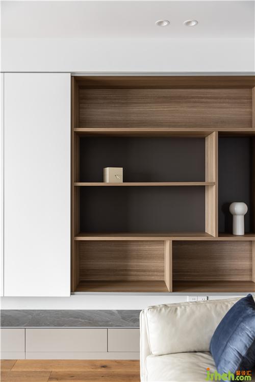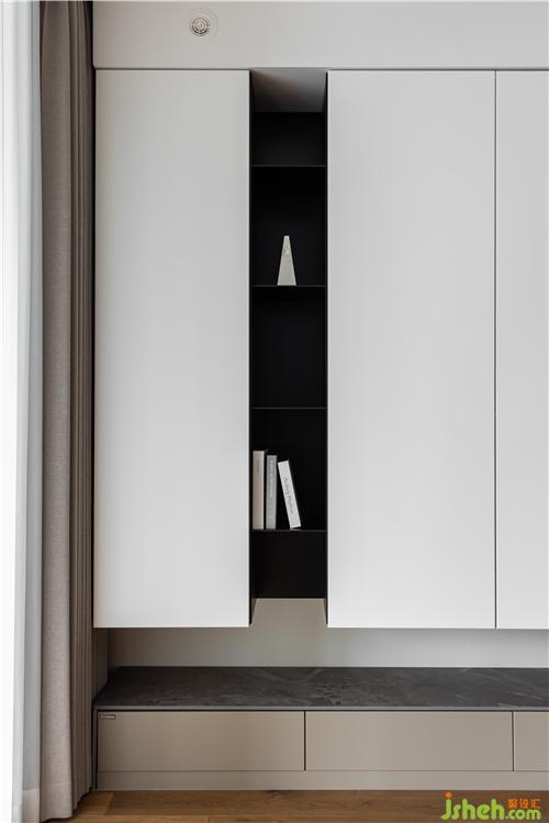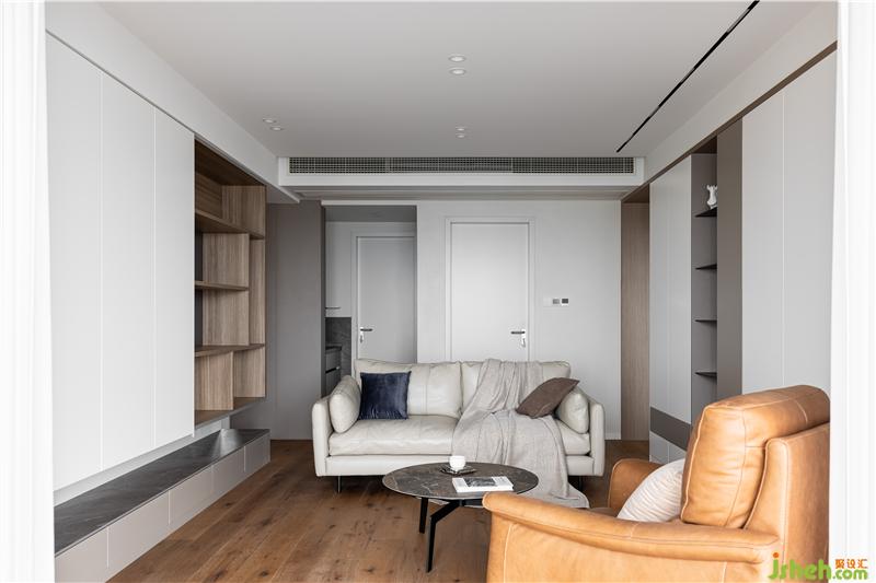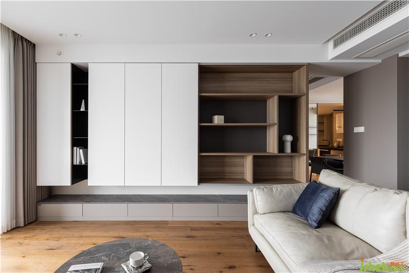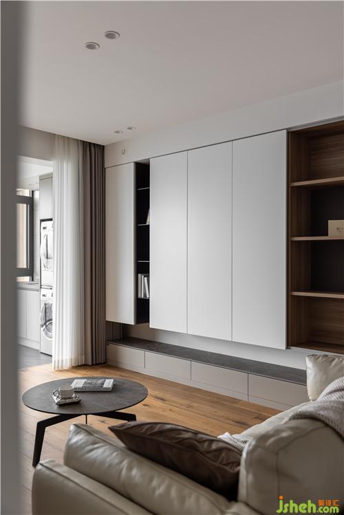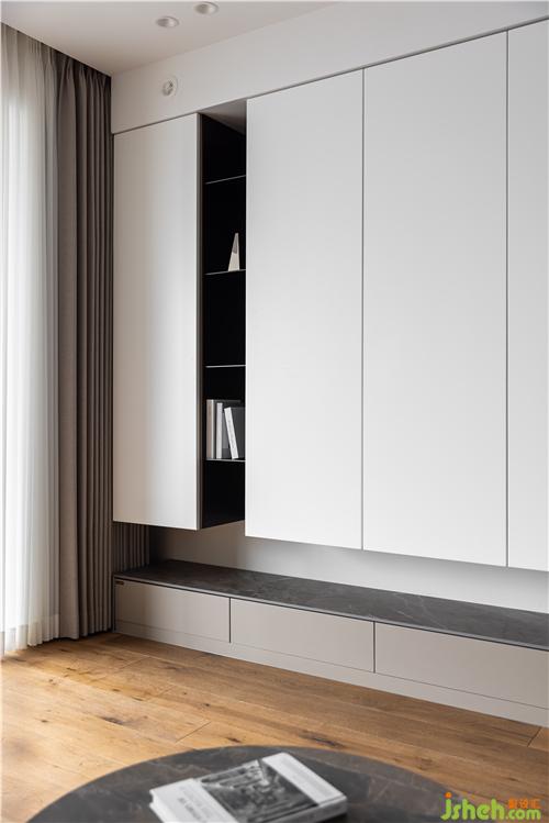 悬浮巴士柜门,把电视机内嵌其中,观影模式与阅读模式随意切换,呈现出多样的家庭场景.