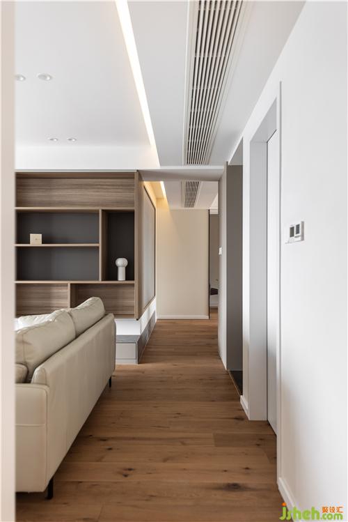 吊顶暗藏灯带,贯穿客厅及餐厅,增加空间层次.