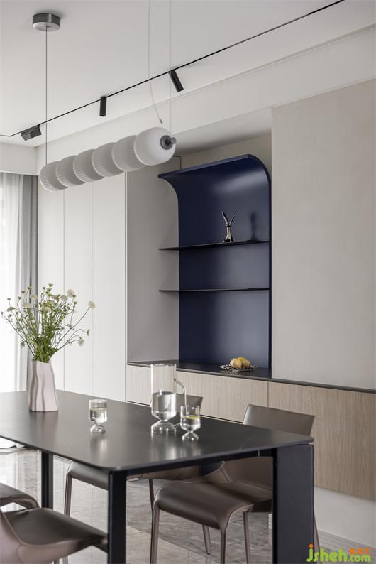 南京家居设计克莱因蓝与黑色钢板置物架搭配,静谧纯粹.