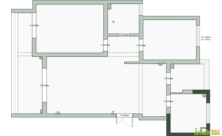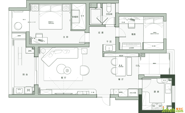 4.原始阳台一分为二,部分空间纳入主卧保证主卧的采光及舒适度