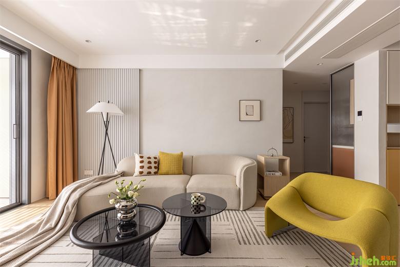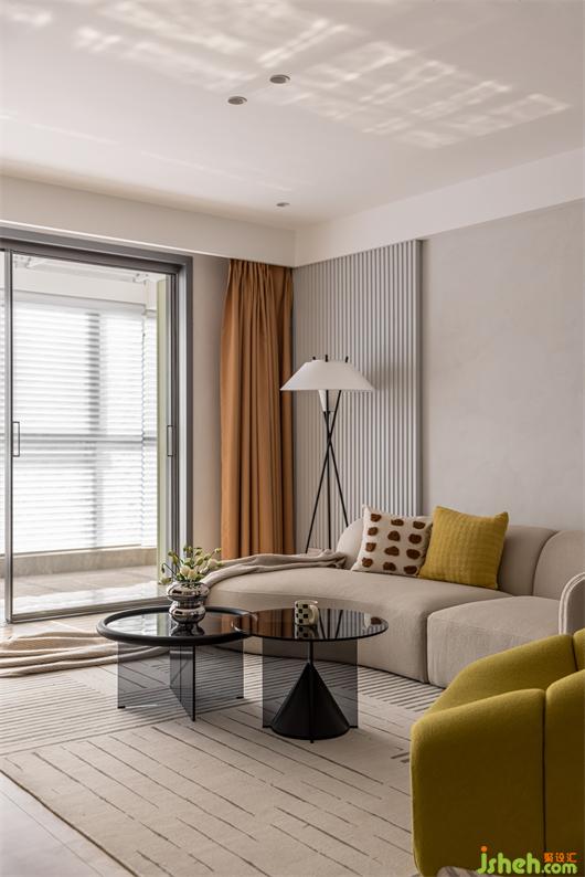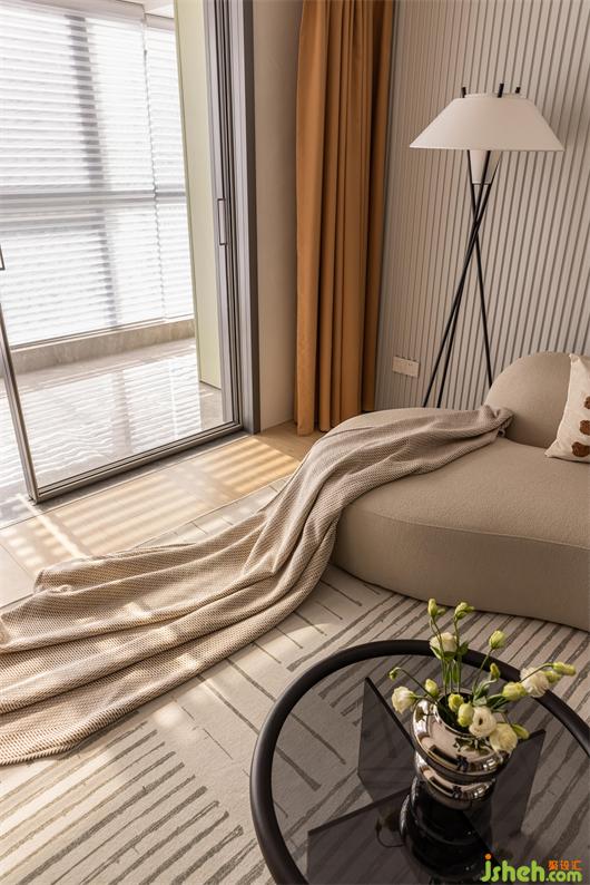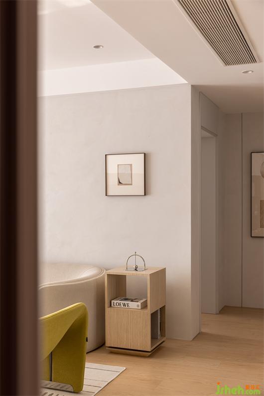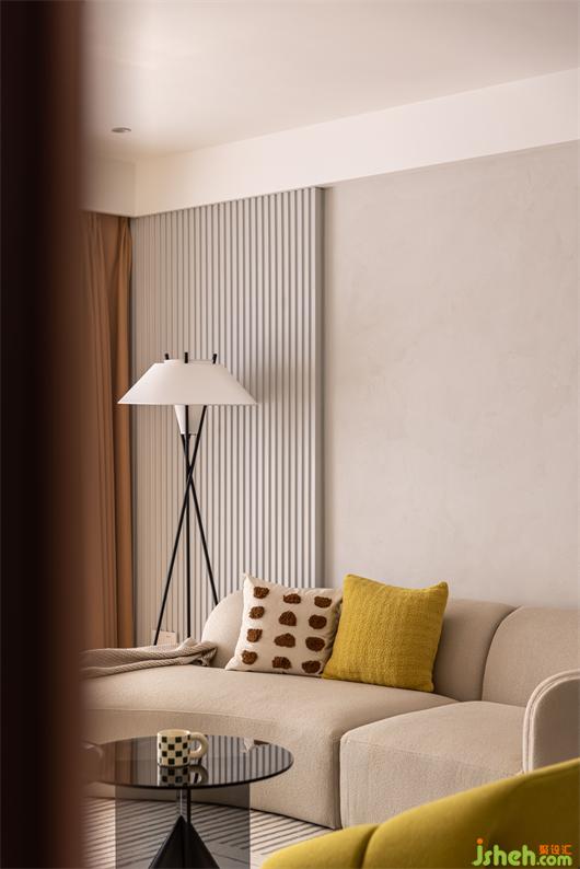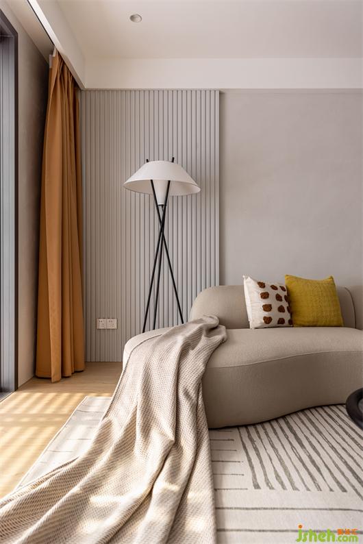 南京家装设计以自然感的暖灰系艺术涂料墙面为基调配以同色系的栅格板装饰过渡。表达了业主在舒适居住空间中追求一丝理性思考的生活态度。线条简洁的现代空间中大面积运用暖白与原木,搭配浅草绿,趣味黄等色系,达到温馨且有格调的居家氛围。