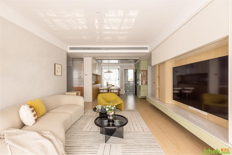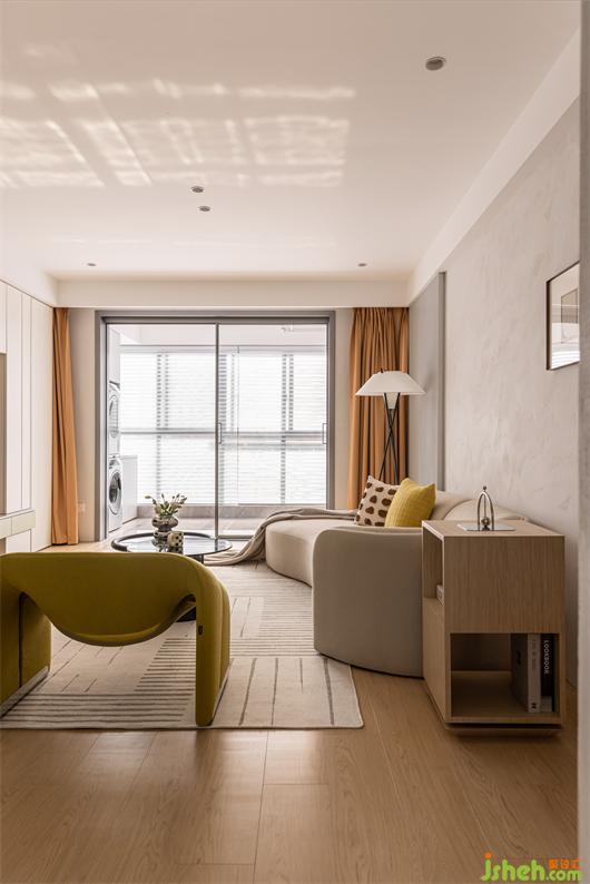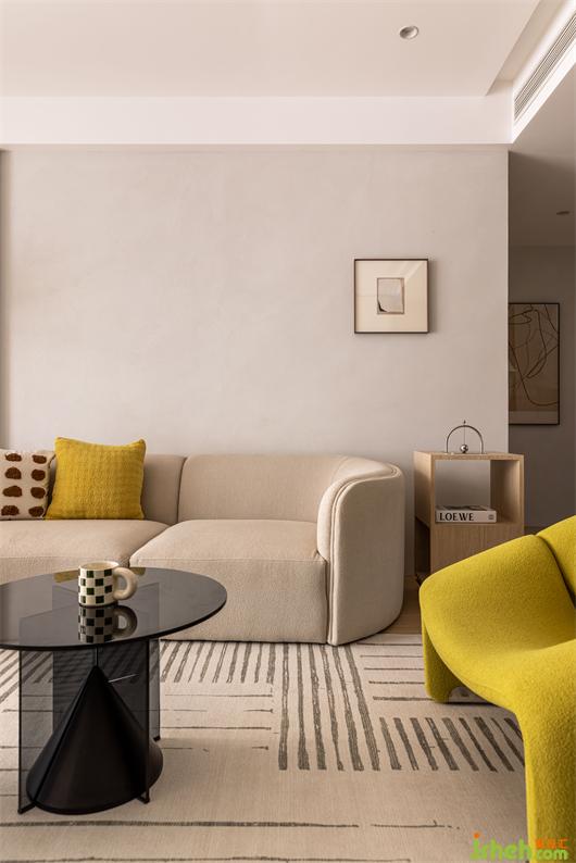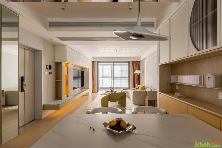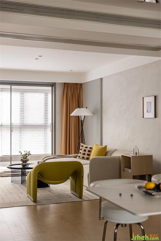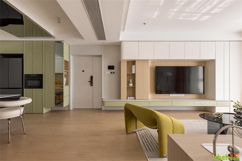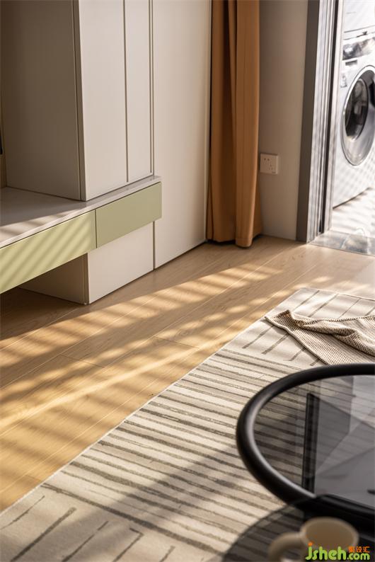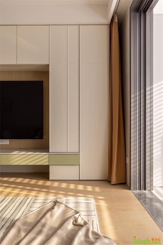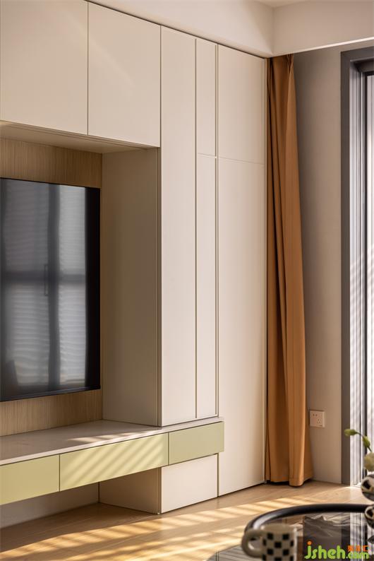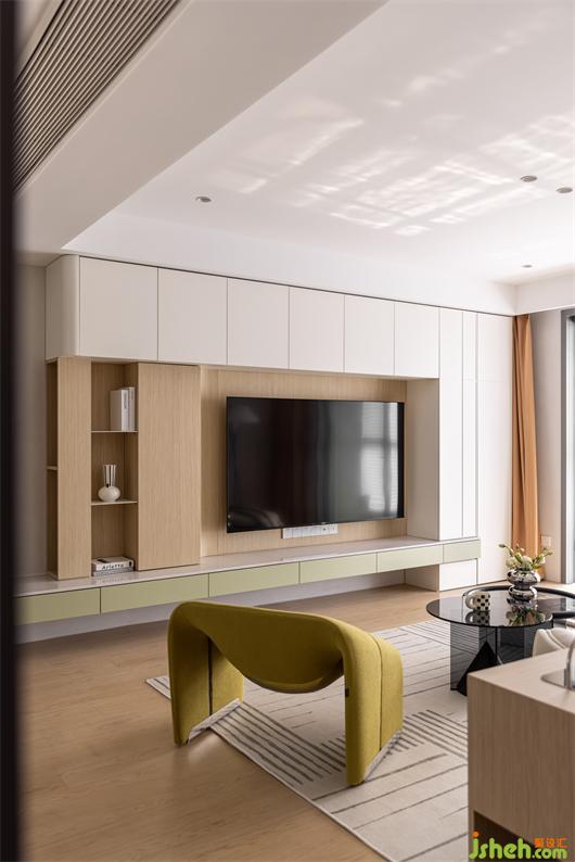 南京家装设计整体采用无主灯设计,踢脚线也被艺术涂料代替,空间自上而下流畅一体,营造统一序列感,扩大空间视觉。整铺的原木地板让空间延伸性更强,自然的行走触感也让紧凑的都市生活在回到家后得到释放。