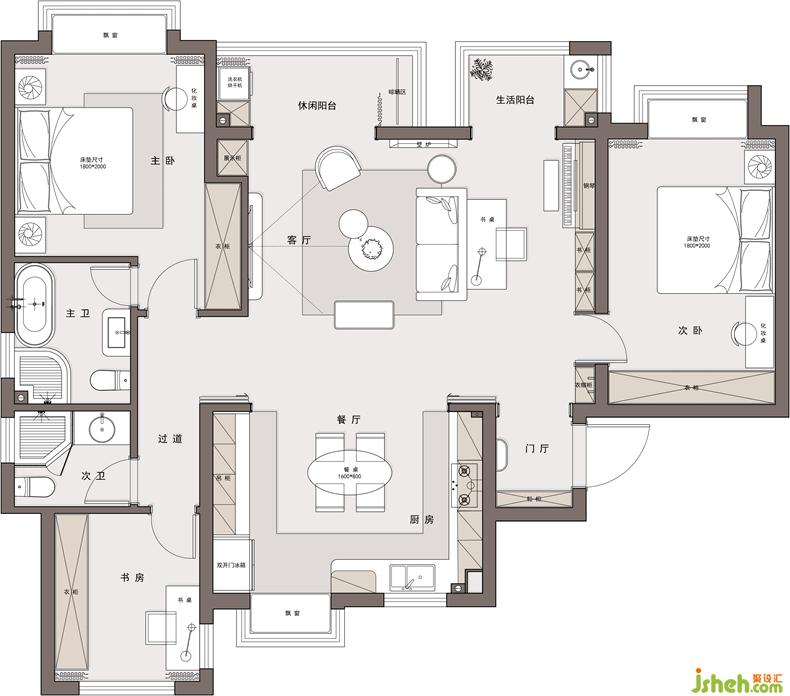 3.客厅与书房融为一体,尽可能释放公共空间的功能属性