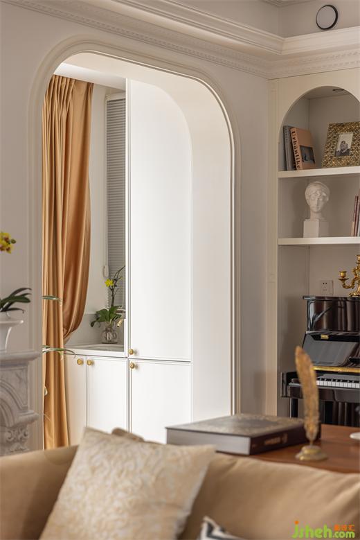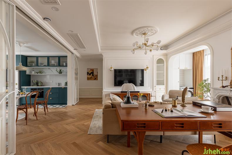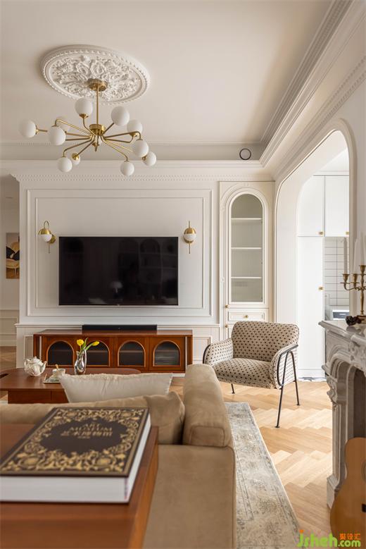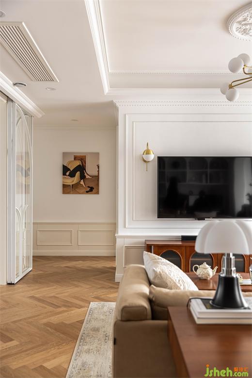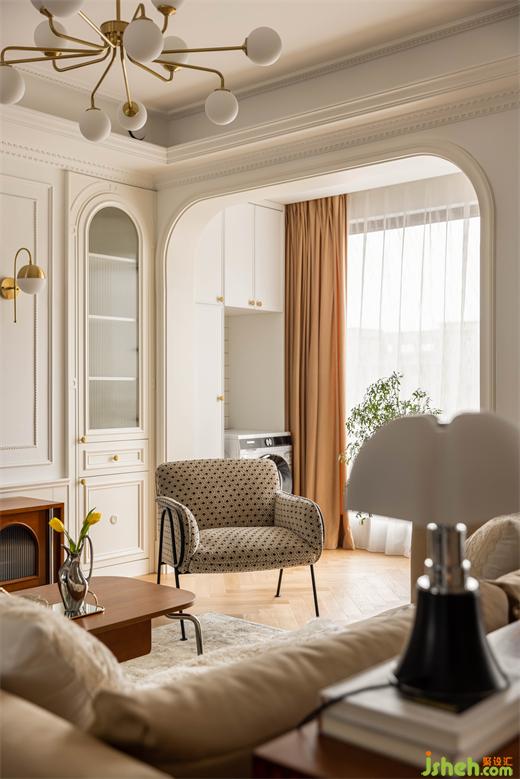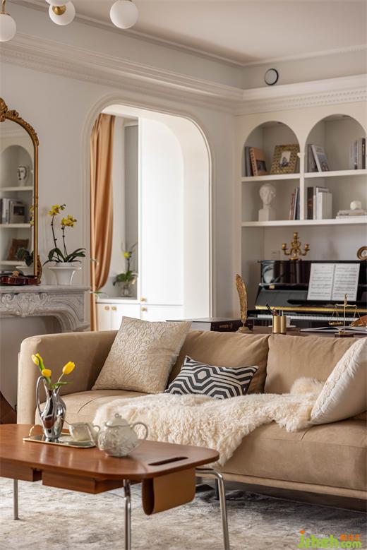 温柔的奶油白色系配上温润的木质材料,南京装修设计公司整体客厅空间弥漫着温柔优雅的气息。两扇落地窗保证了客厅采光,整体空间尽显宽阔明亮。