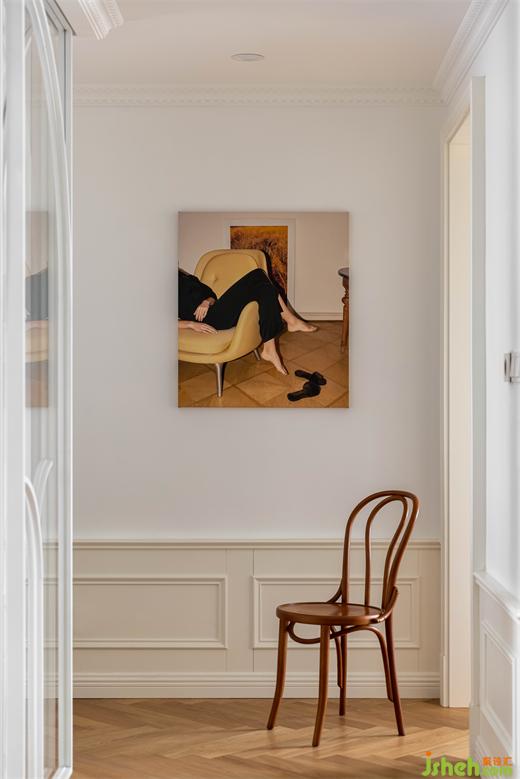 走廊尽头一幅跳色挂画可谓点睛之笔,轻松惬意的氛围感油然而生。