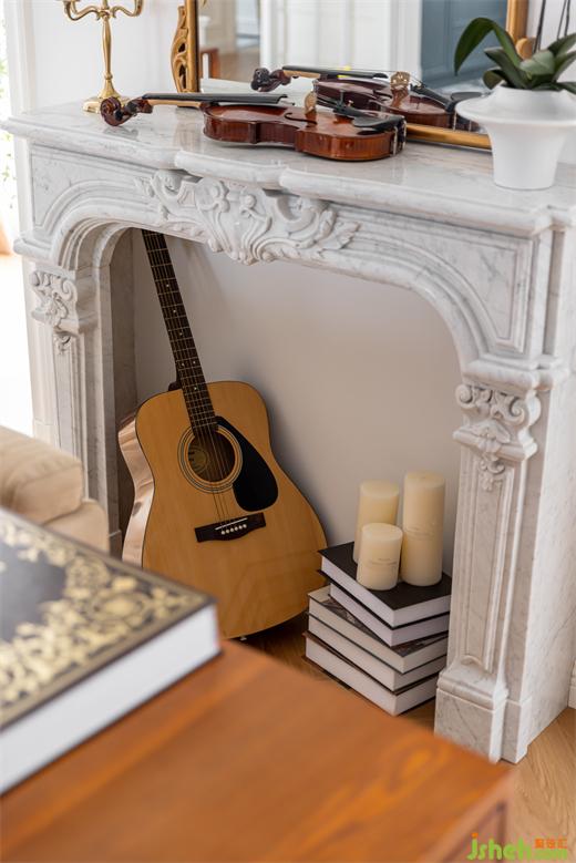 雕花石材壁炉与金框镜面的组合更是来源自法式浪漫的经典搭配,南京装修设计公司壁炉本身的色彩不会过于张扬,但又在整体基调上基础上融入法式浪漫感。