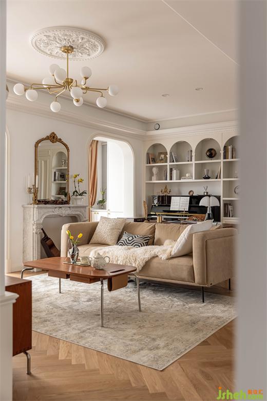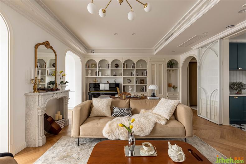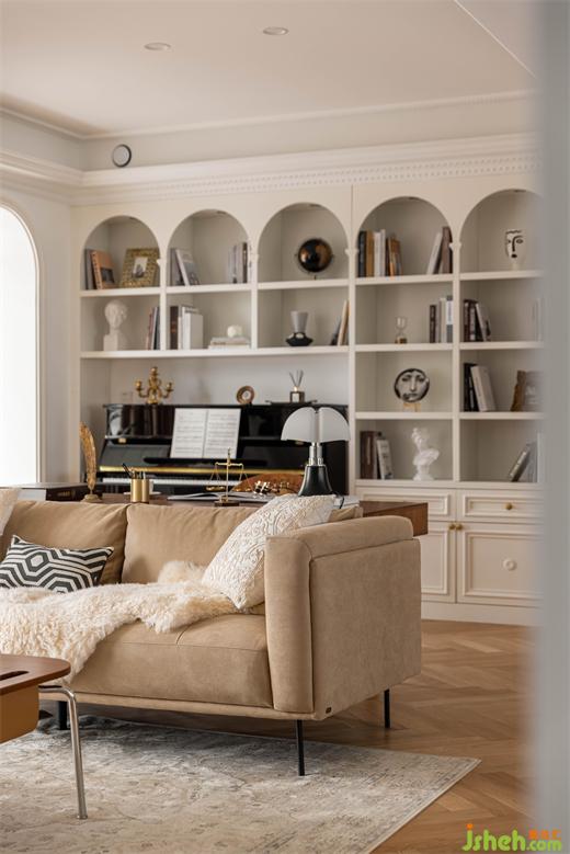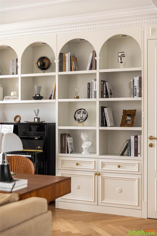 无论是拱门还是柜体开架,拱形线条延伸至整个空间,南京装修设计公司线条层次丰富、起伏变换,为空间注入一丝来自上一个世纪的浪漫与细腻。