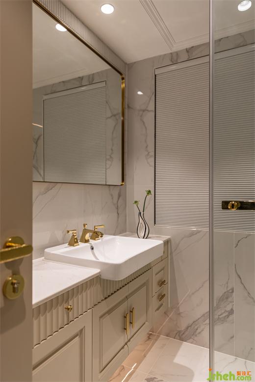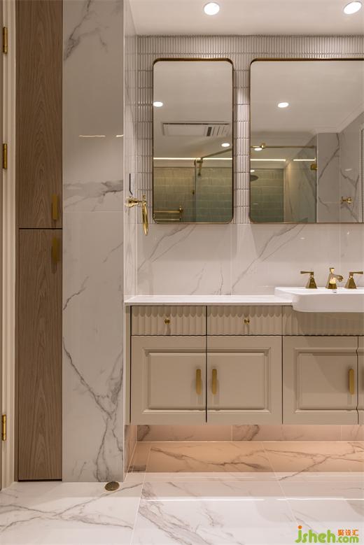马赛克小白砖和绿砖作为吸睛点,花漾美作金色系五金件区别于主卫,设计巧思尽显。