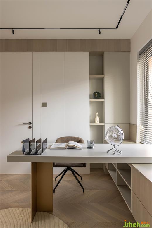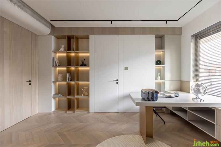二楼中厅是孩子学习和亲子互动的主要区域。大面积留白与浅木色使空间更具温柔的调性,充裕的空间、利落的软装搭配,可以让空间容纳多种生活情景。