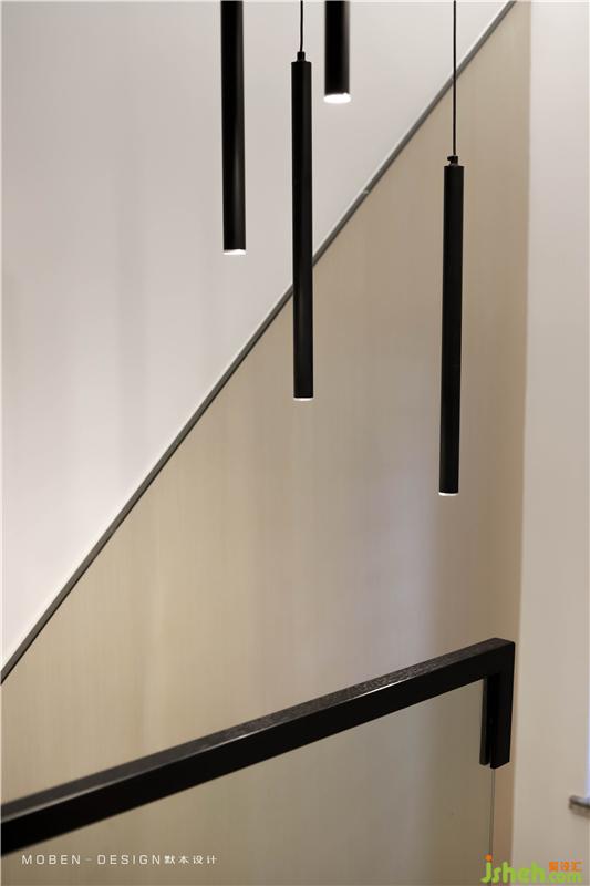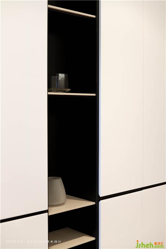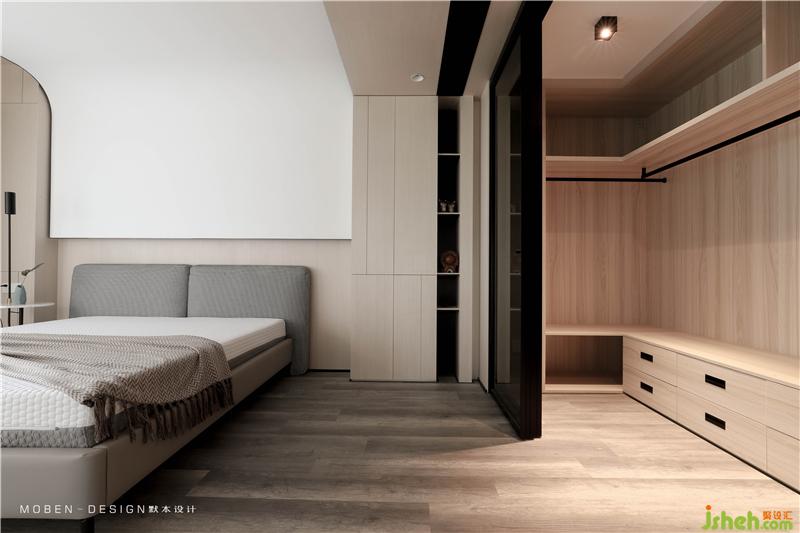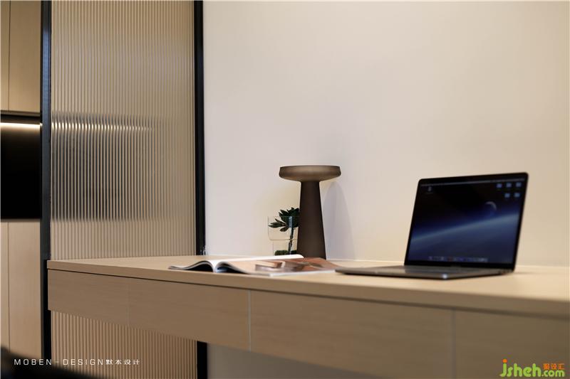 木饰面的分割和线条感,形成空间的转换,过道木饰面和地板的延伸感,使空间显得更大。