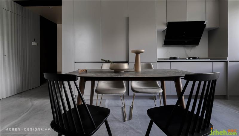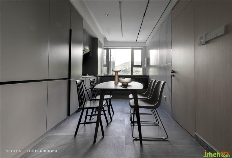 灰色烤漆板储物柜和冰箱柜,满足生活的全部需求,清洁也方便