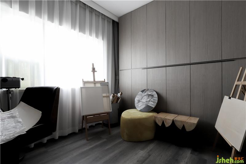 窗户反梁位保留,暗藏窗帘盒和投影布幕