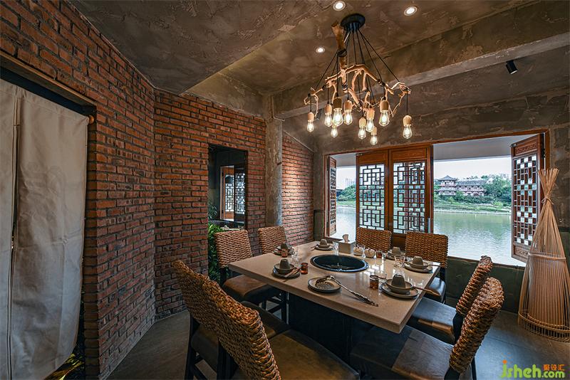 本项目位于大千故里甜城内江,主体是一栋两层的仿古建筑,室内空间300平米是室外100平米院子,建筑本身于沱江相依,二层的窗洞如同一个一个的画框将沱江的美景抱入怀中。