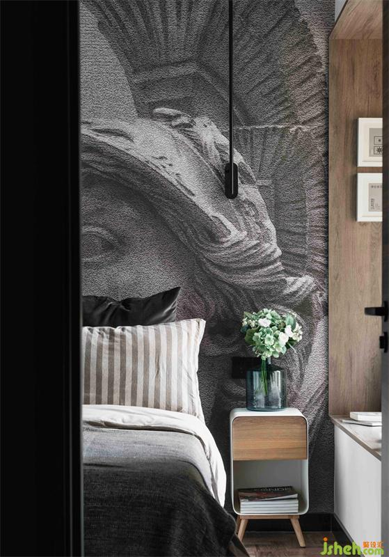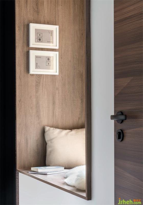 卧房虽空间精巧,透过玻璃黑框窗的自然光让空间获得良好的明亮度,使空间更加具有层次和立体感。