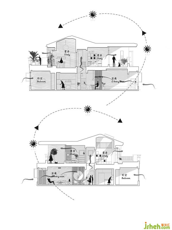 记忆中的家究竟应该是怎么样的!有白墙青砖、有木门天井、有母亲烹饪的菜香、有孩子无拘无束的欢笑,在这个150平米的容器中我们希望把它全部都装进去。本项目是一个150㎡四室两厅的复式住宅。