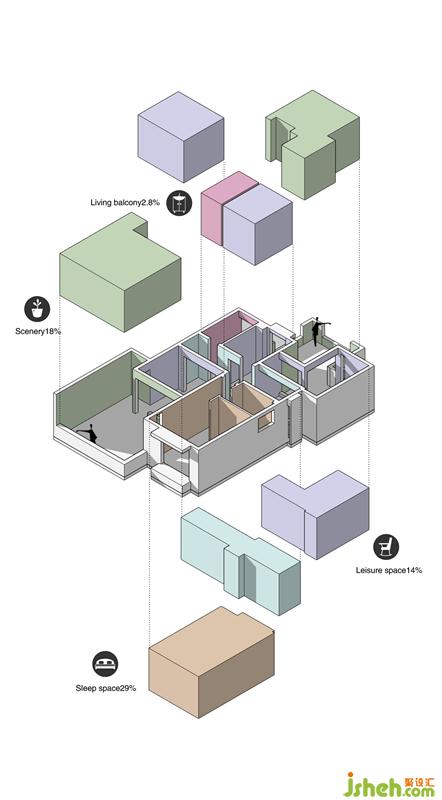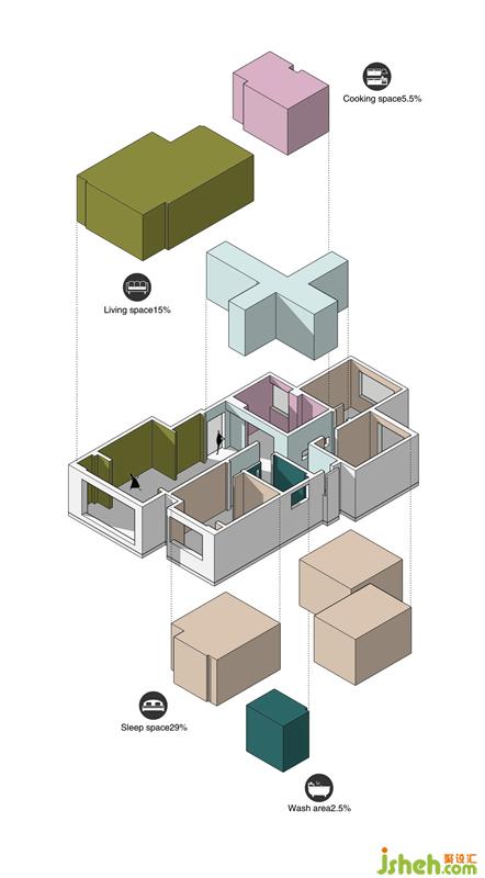 我们将厨房与过道的共用墙上局部打通让在厨房中为一家人忙碌美食的母亲与过道中玩耍的孩子有了更多的互动交流。