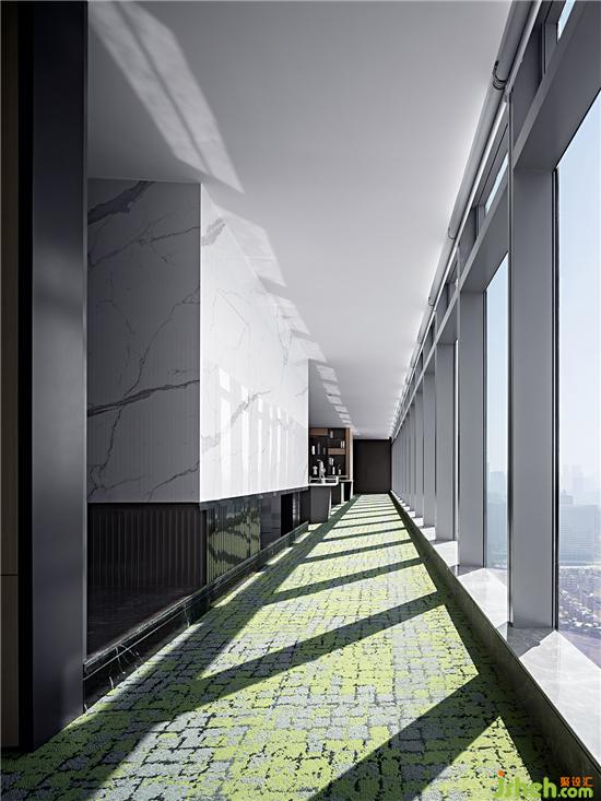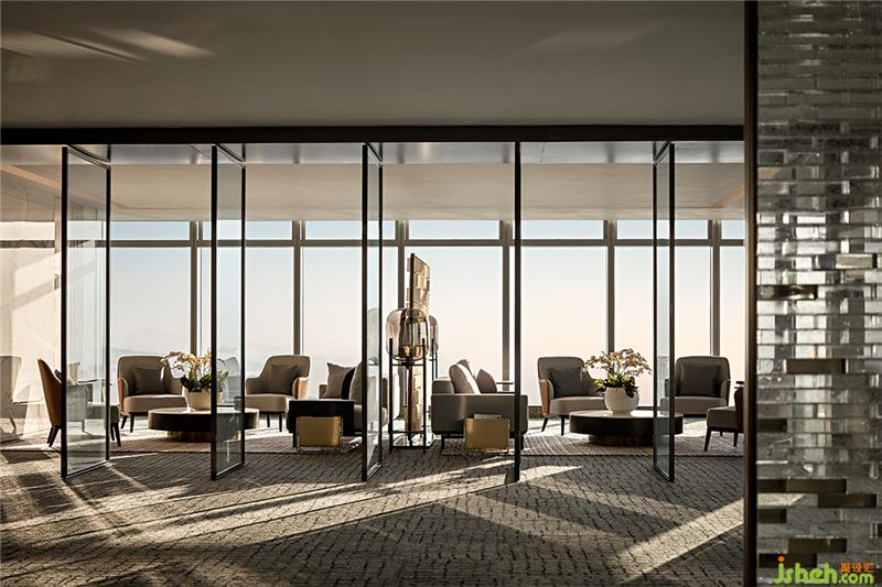 巧妙地将自然光运用于室内设计,有助于强化空间的纯粹质感,提升空间的品位和内涵,同时也起到节能环保的作用。在本项目中,玻璃幕墙实现了内外空间的交流,自然光能透过玻璃幕墙照进室内,使得开放风格的空间变得更加通透明亮。