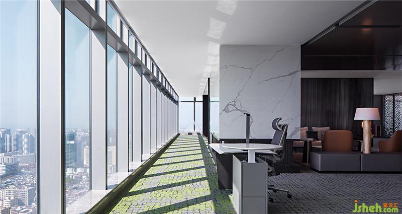 项目配套的纯甲级写字楼-宏发前城中心,拥有188米天际高度,其外立面采用双银中空LOW-E玻璃幕墙,整体建筑风格时尚大气,极具张力和国际感。办公室设计