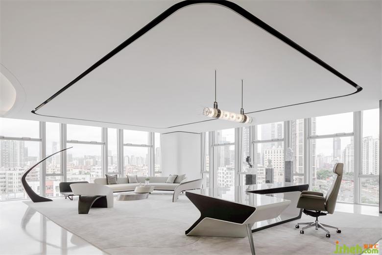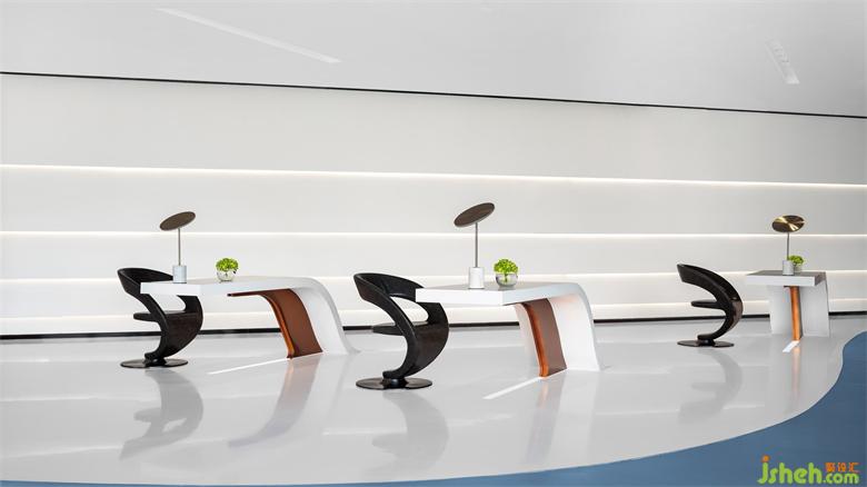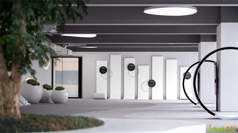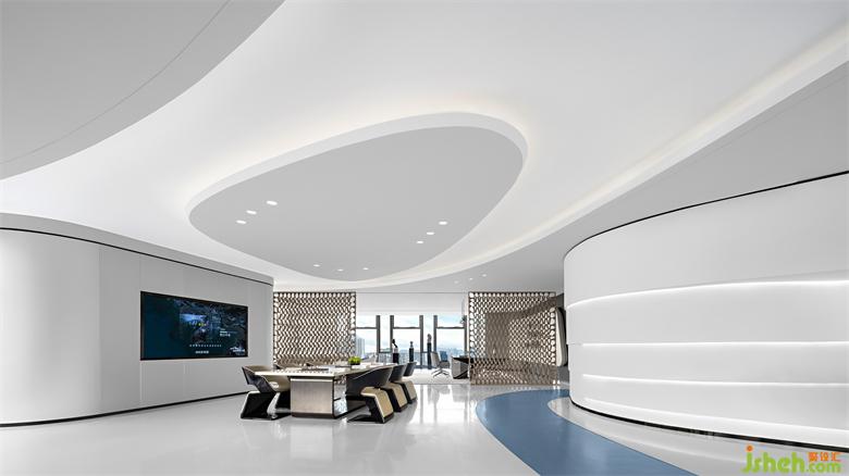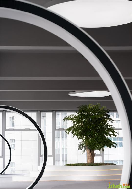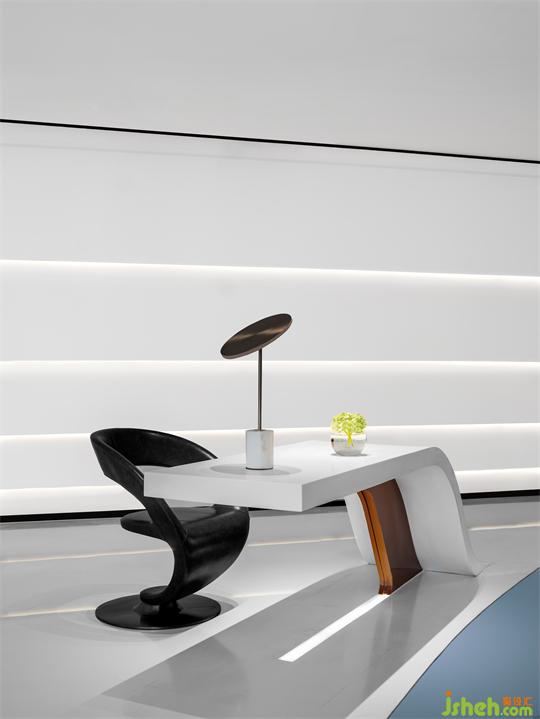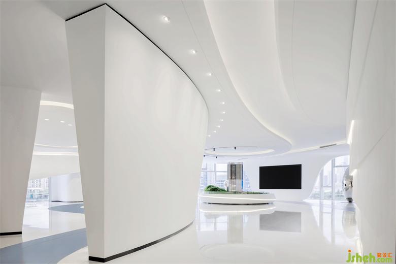 在大厦办公设计走動時,墻壁被弧形拱門分割,形成秩序感,並圍繞一個向內看的區域通過拱形的空間開口形成視覺滲透。太空艙內的艙門造型,秉承高科技企業的時代感,起到過渡的作用,配合柔光燈帶,賦予空間呼吸感,具有讓人在精神上獲取飽滿力量的能力。工作台模擬植物根莖向上生長之勢,由地面拔地而起,形成特色的工作面,连接起用戶對健康、休閒、社交、舒適的四大述求。未來,我們的設計也將圍繞建設互聯網+創新示範辦公展開。