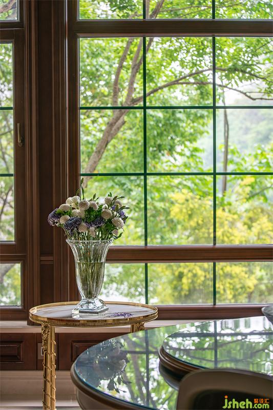 会客厅的轻柔窗纱被微风卷起,山脊涂上了一抹青色,镶嵌于阳光与书籍之中,满载着居住者对文化内蕴与人文精神的内在涵养。