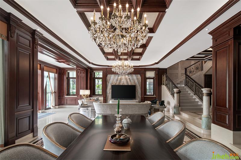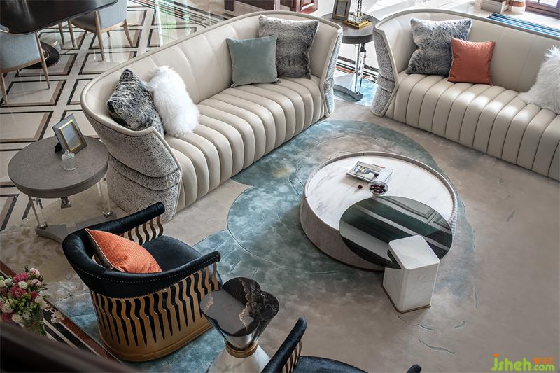 回转到负一楼空间,家庭起居室更享有家人的合乐美好和生活的惬意感知,家具陈设及空间的联动营造出慵懒的气息,置身其中衬托出一份陪伴与浪漫感。