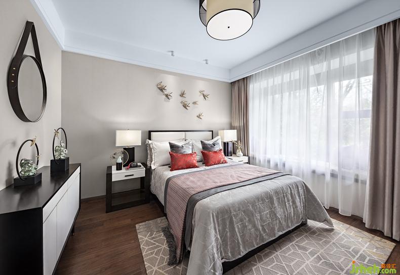 主卧中增加一体化电视柜、梳妆柜,丰富了空间的功能性。设计师将对细节的追求融入家居的方方面面,满足家居生活需要的同时也体现了主人对人文趣味的诉求。