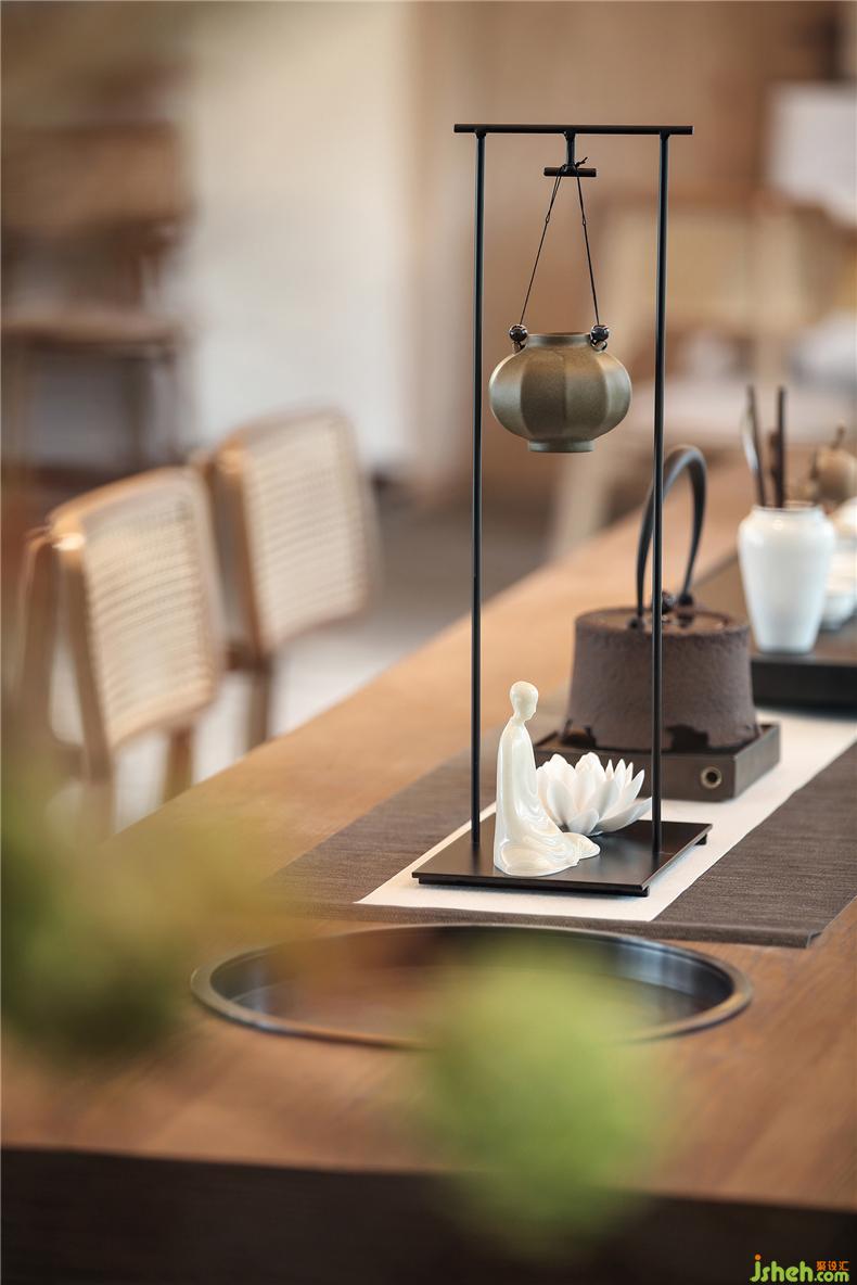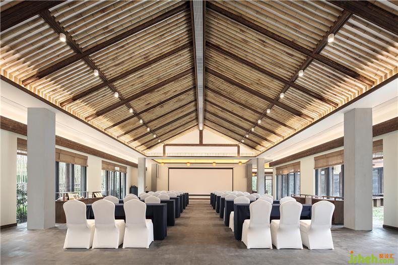 九华当地多竹木,设计就地取材,空间中运用较多原木家具和竹制吊灯,酒店设计及一些土陶制品,表达对本土文化的致敬和延续,净土在禅,于自然质朴之中,敛去了浮华气息。
