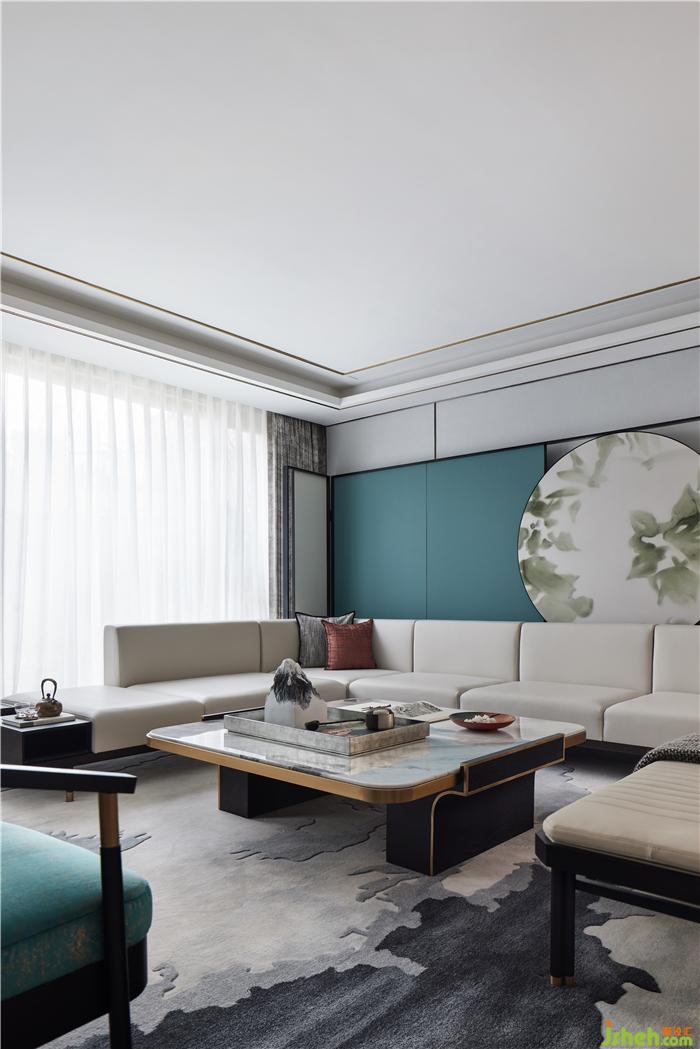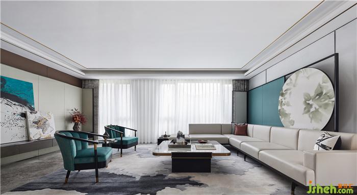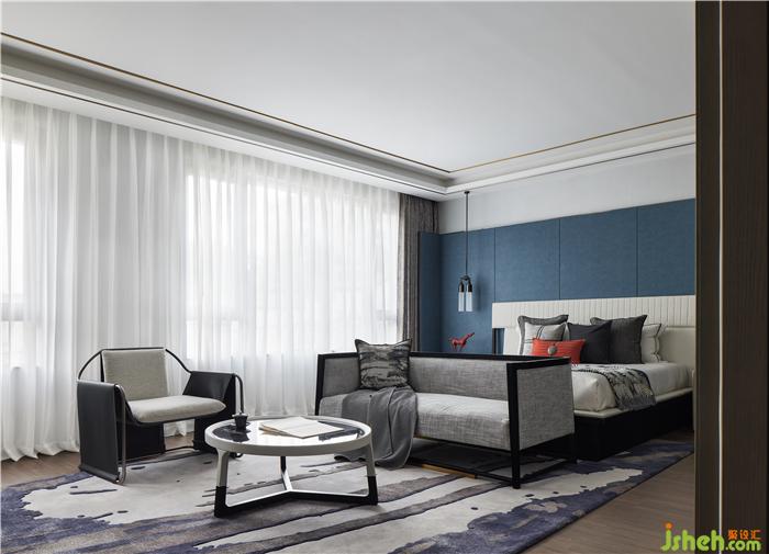 空间运用了大量的留白手法,“扎染”空间,辅以靛蓝,极尽物态之美,自含宁静致远。样板房设计