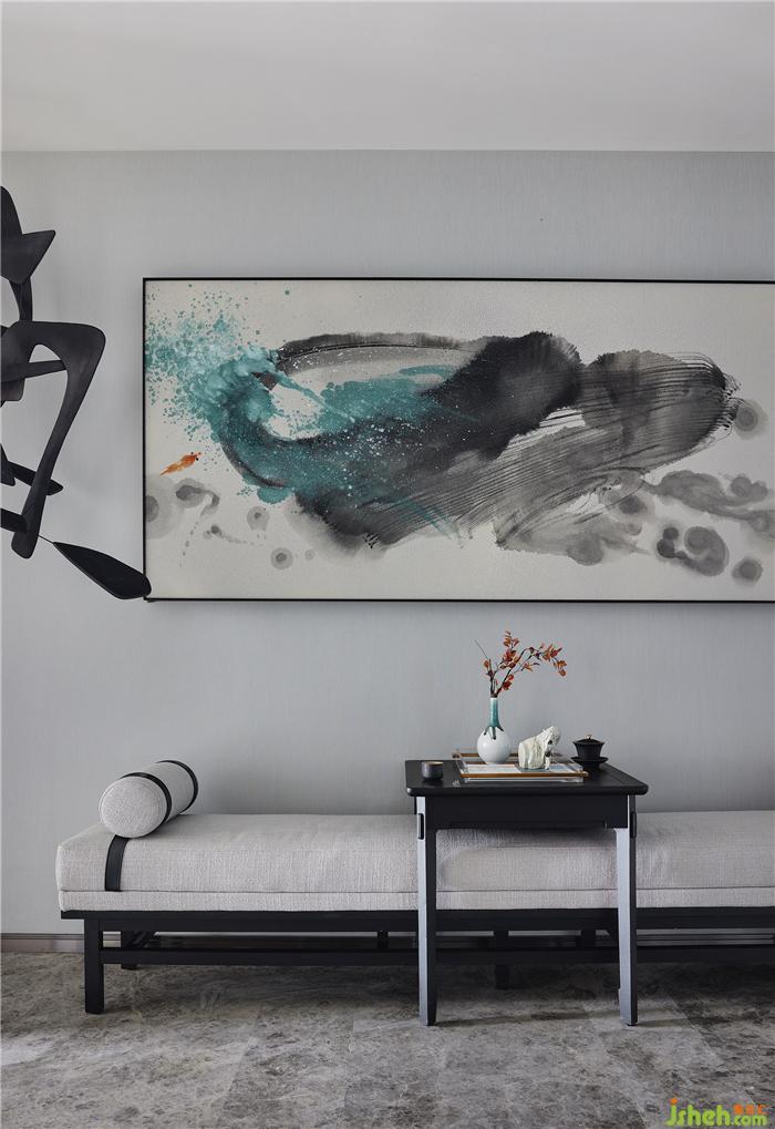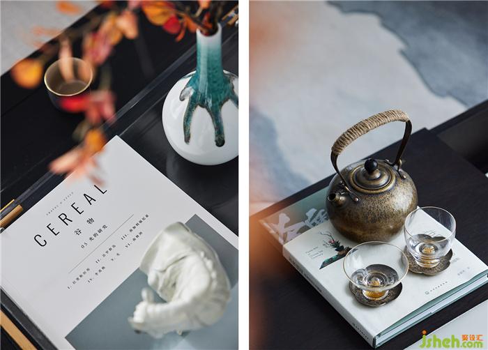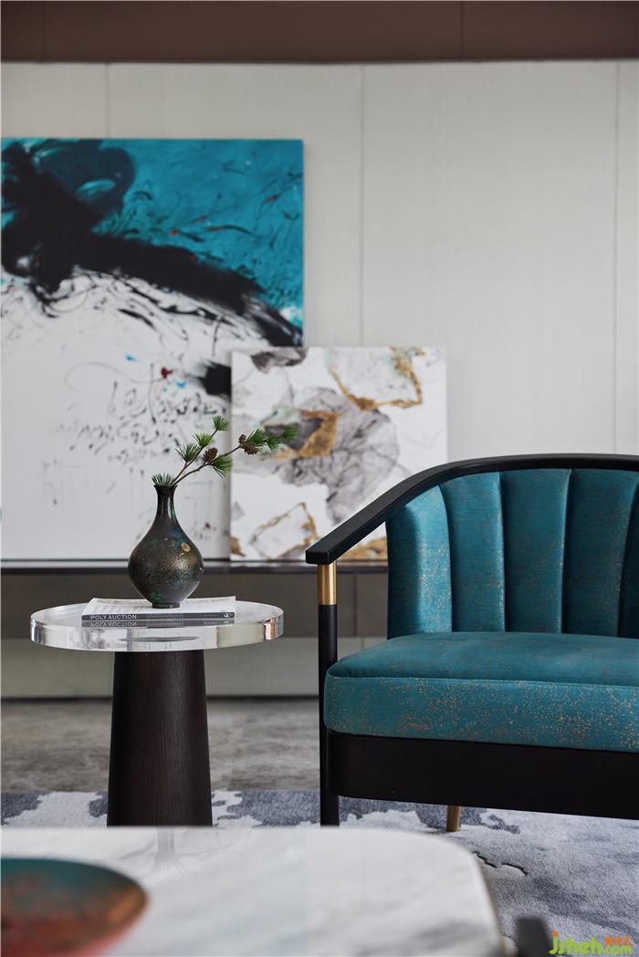 一椅、一墨、一瓶、一茶,极具东方古典美的家居陈设,是本意也是天意,起身、饮茶,样板房设计青黛流转之余,颇有怀古通今的写意姿态。