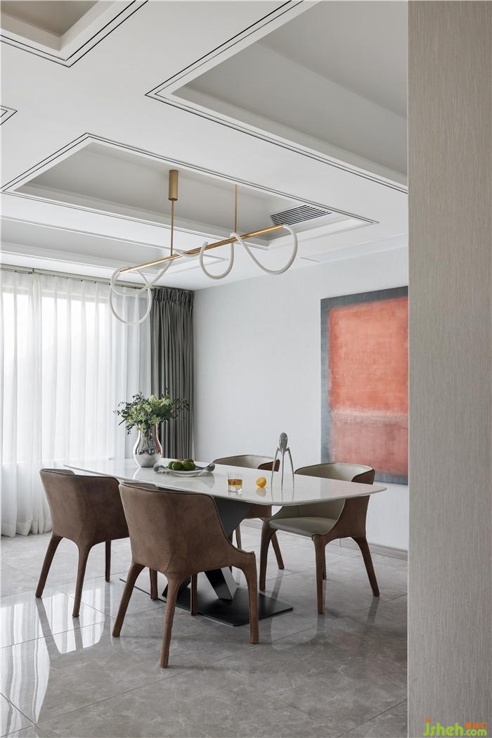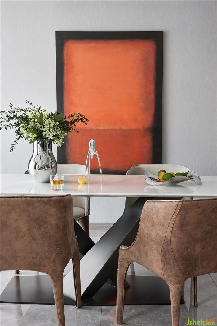 温暖的颜色蕴藏着生命力,本案空间以抽象绘画为点缀,糅合不同视觉形态的色彩,将艺术注入生活,与热切一同生长。