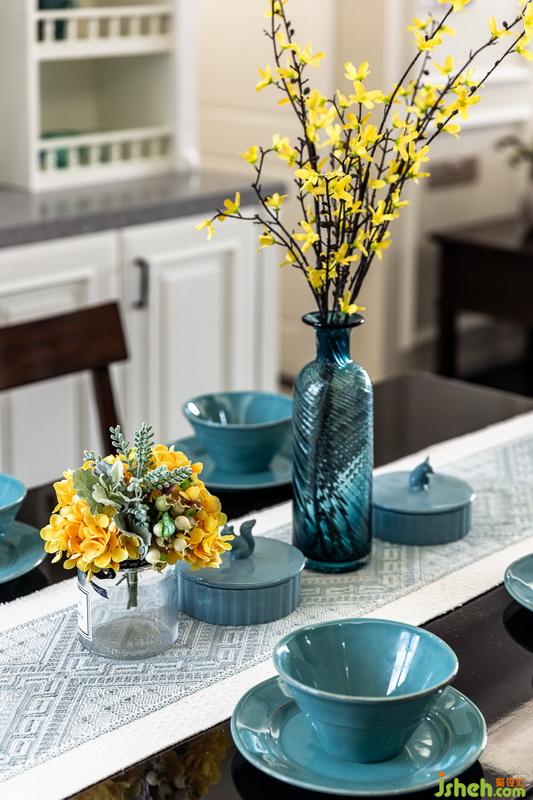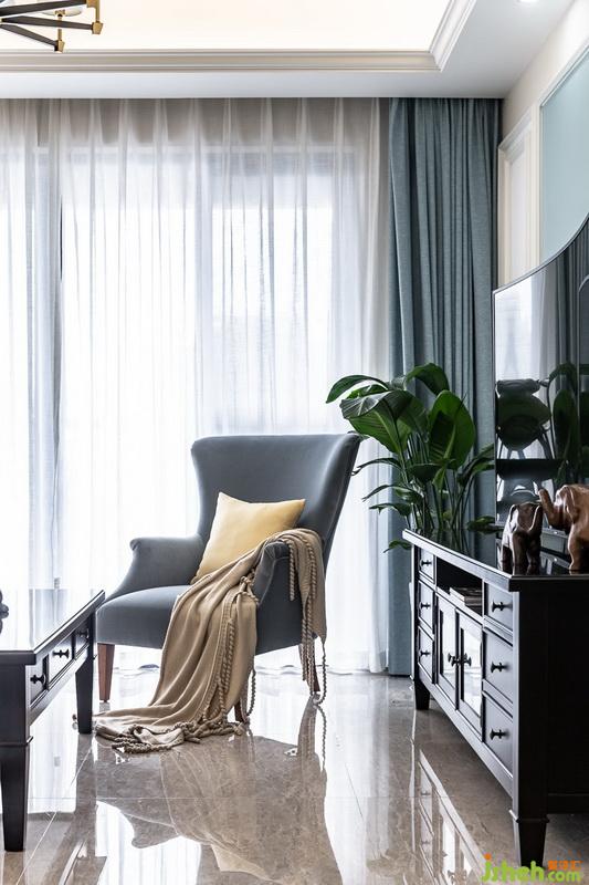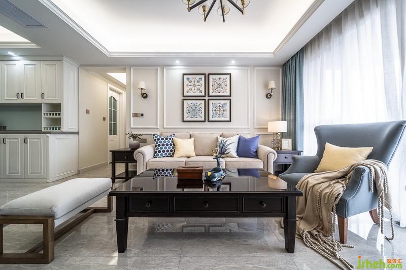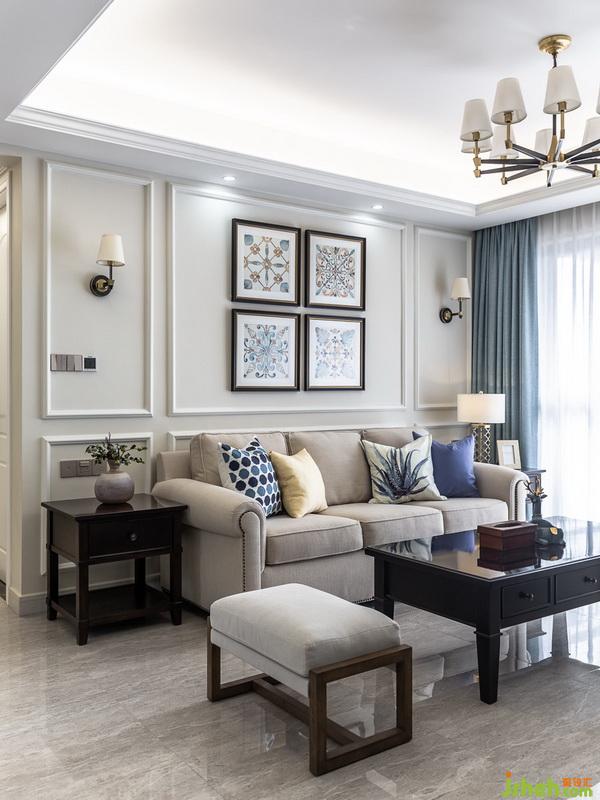 通过对这套精装房的改造家中,色彩与家具配饰的完美融合,使得这个家充满了温馨感。原有客餐厅地砖、米色的布艺沙发、灰蓝色的棉麻抱枕、浅杏色墙面、黑胡桃实木家具,深色调与素雅的交融既稳重又充满时尚感美式复古挂画,展现了精致生活的独特艺术。