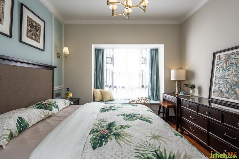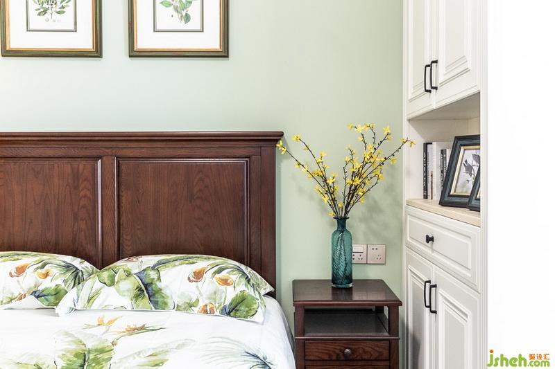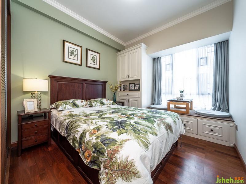 我们在设计的过程中,跳出了传统的配色框架,已灰绿色床头背景和绿色棉质床品相呼应配以黄色装饰提亮整个空间为方便让人平时放置一些常用药品和物件在靠窗一侧增加了一个储物柜,并在靠窗位置设计了与原飘窗高度的储物矮柜扩大飘窗,变成一个多功能的设计,既能储物,又能喝茶休憩。在松软的坐垫上,沏上一壶茶,享受午后阅读时间,尽情沐浴温暖阳光。