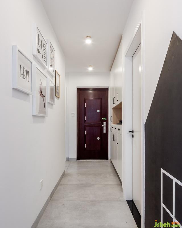 白色鞋柜简洁而明亮,时刻呼唤主人的归来。房子黑板墙,是孩子记录成长的乐园,肆意挥洒着童真和快乐。北欧调调的组合照片墙,为过道增添了一番情趣。
