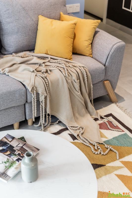 沙发背后那一抹蓝色,跳跃起整个空间,灵动而有魅力。电视背景和房门在同一平面,房门采用隐型门设计,使有型藏于无形之中。