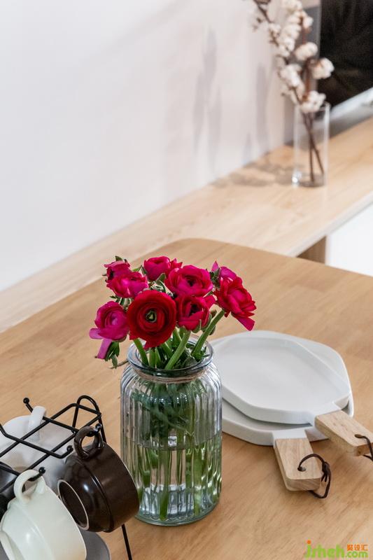 白色与木色搭配形成的储物卡座,实用与美观形成一体,原木色餐桌无形跟卡座相映成趣。闲暇时,冲一杯咖啡,摆放一束花儿…