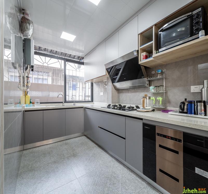 暖灰的冷静与内敛,把厨房从繁杂的日常中抽离,空间呈现出不同于琐碎生活的整体感觉。