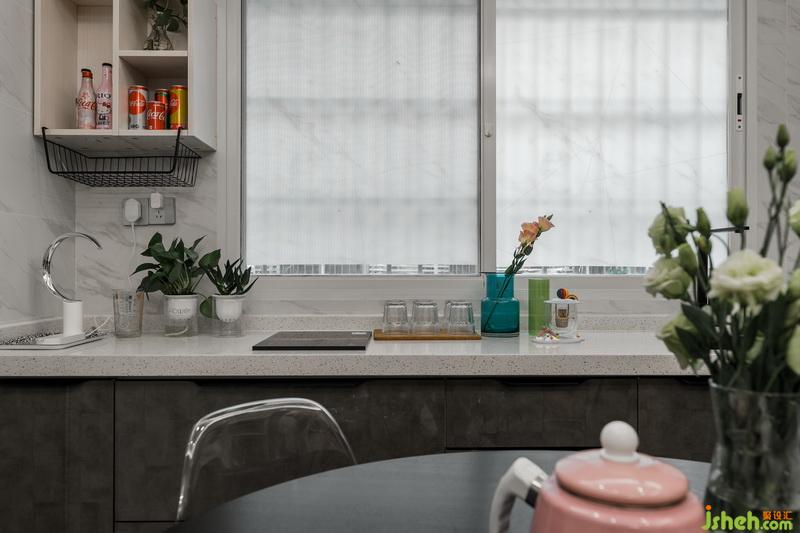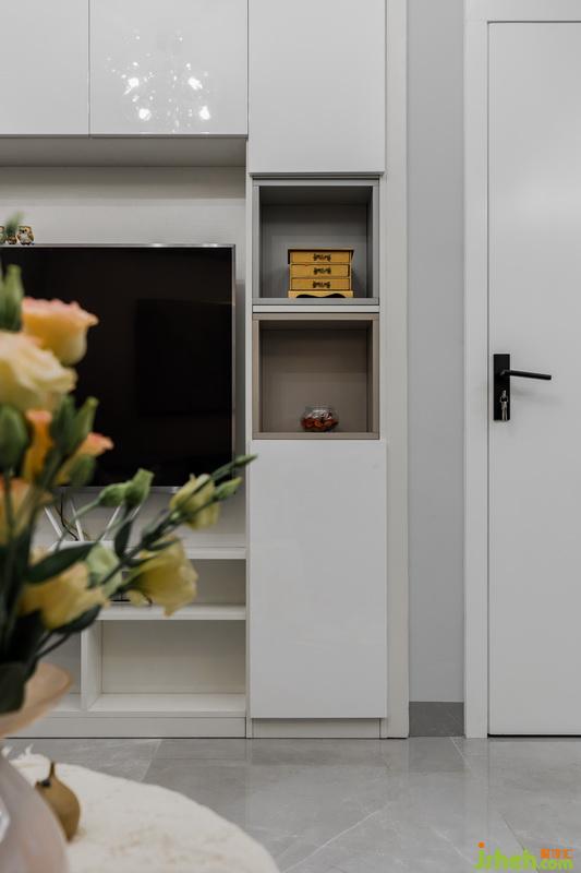 为了增加大量的储物空间,房间都利用榻榻米的储物方式,电视柜也做了一整面墙的储物,从现场的一些小细节中也可以看出,女主人是hellokitty的粉丝。储物柜中预留的开放柜都是前期设计时给公仔们预留的展示位。相信过不了多久尘封在床底箱子里的公仔们都会找到属于自己的位置啦。