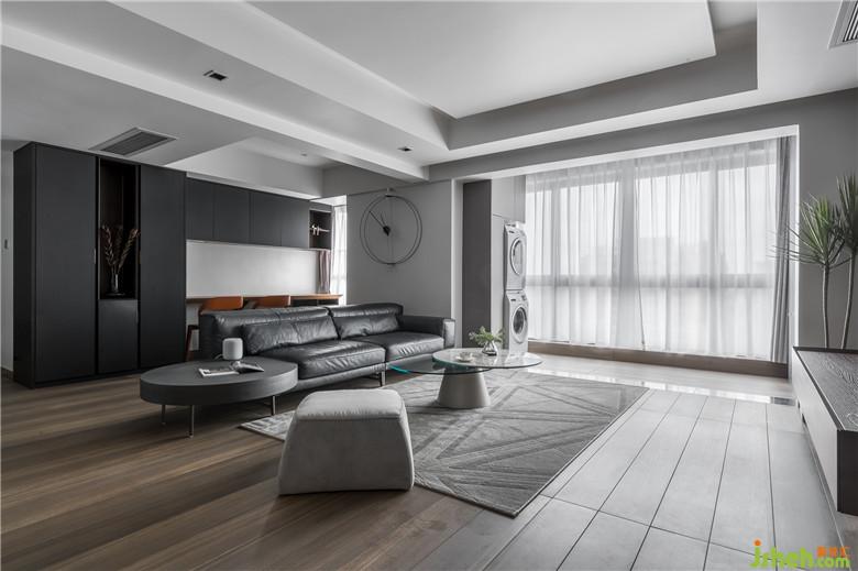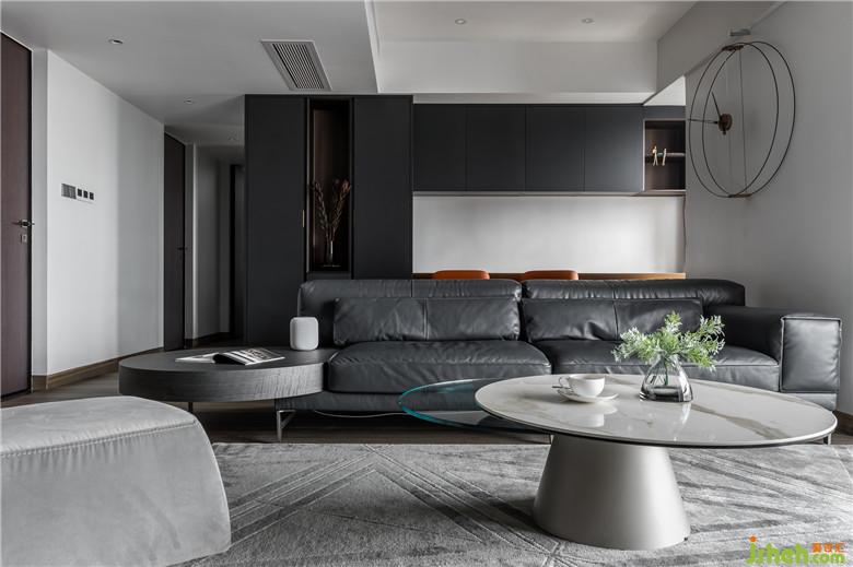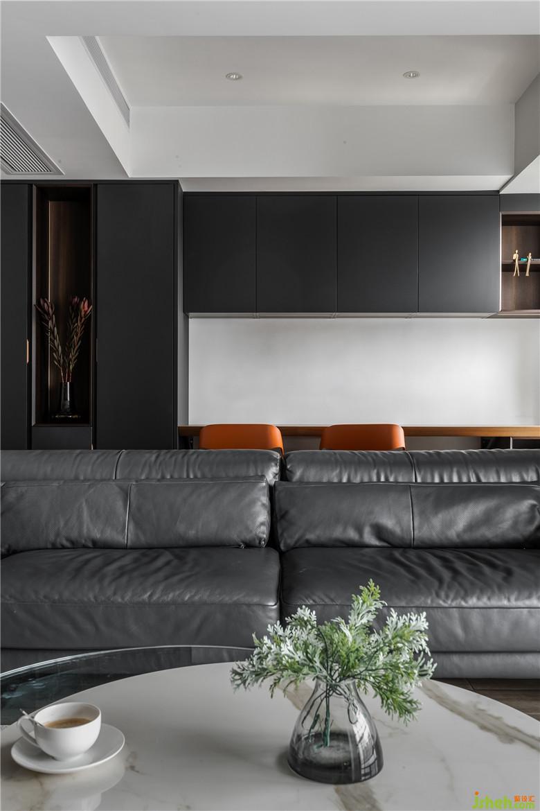 本案原来是新的精装房,房子格局方正,空间也利用合理,原有装修没有明确的装修风格,居于业主对生活高品质的要求,精装房的装修完全不能满足他的生活状态,于是重新设计整个新家。摒弃原有厨房空间,把它融入到餐厅区域,打造纯西式开放式厨房;打破传统书房格局的界限,仅一扇墙距离,客厅和开放式书房融合在一起。