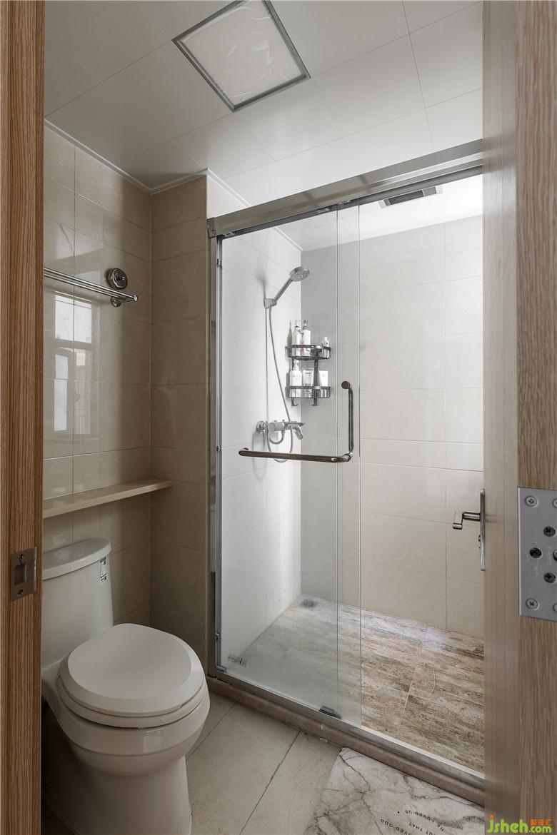 卫生间是原精装修带的干湿分离,洗手台外置,可以满足日常使用。木色柜体和白色台面收纳和清洁也方便。