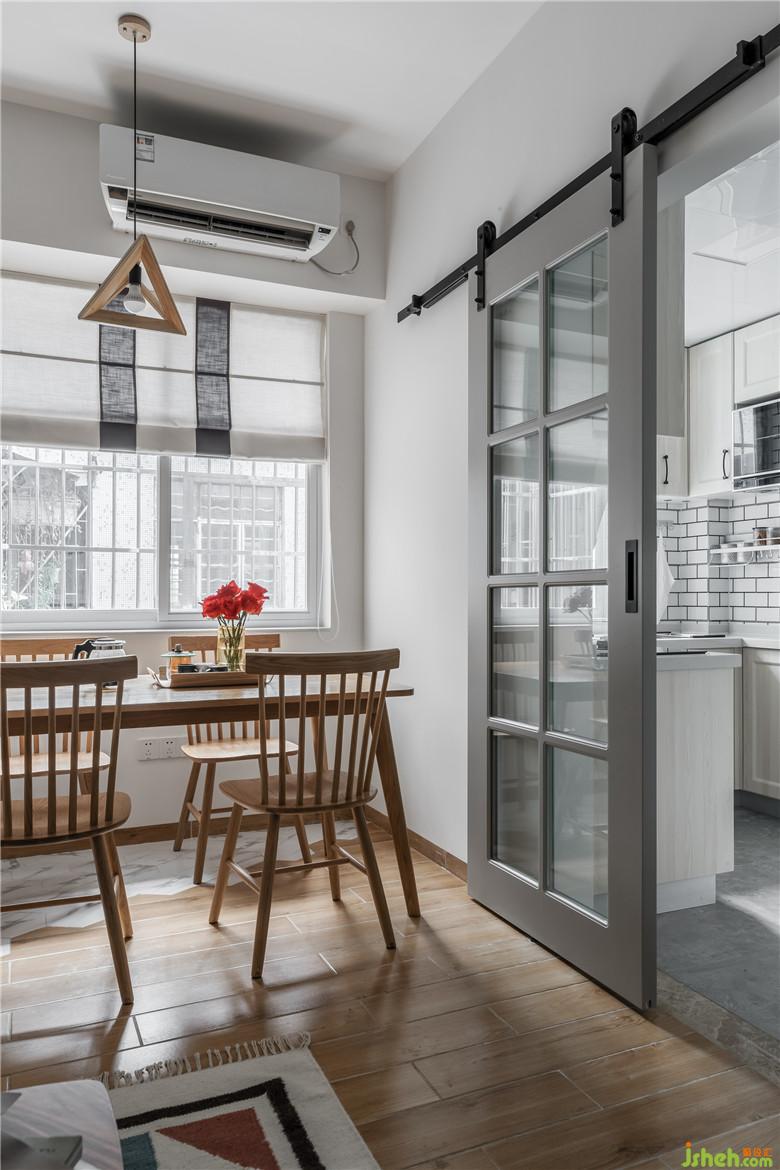 厨房通透谷仓门的设置,让厨房与客餐厅产生微妙的联系,增加更多的透气感