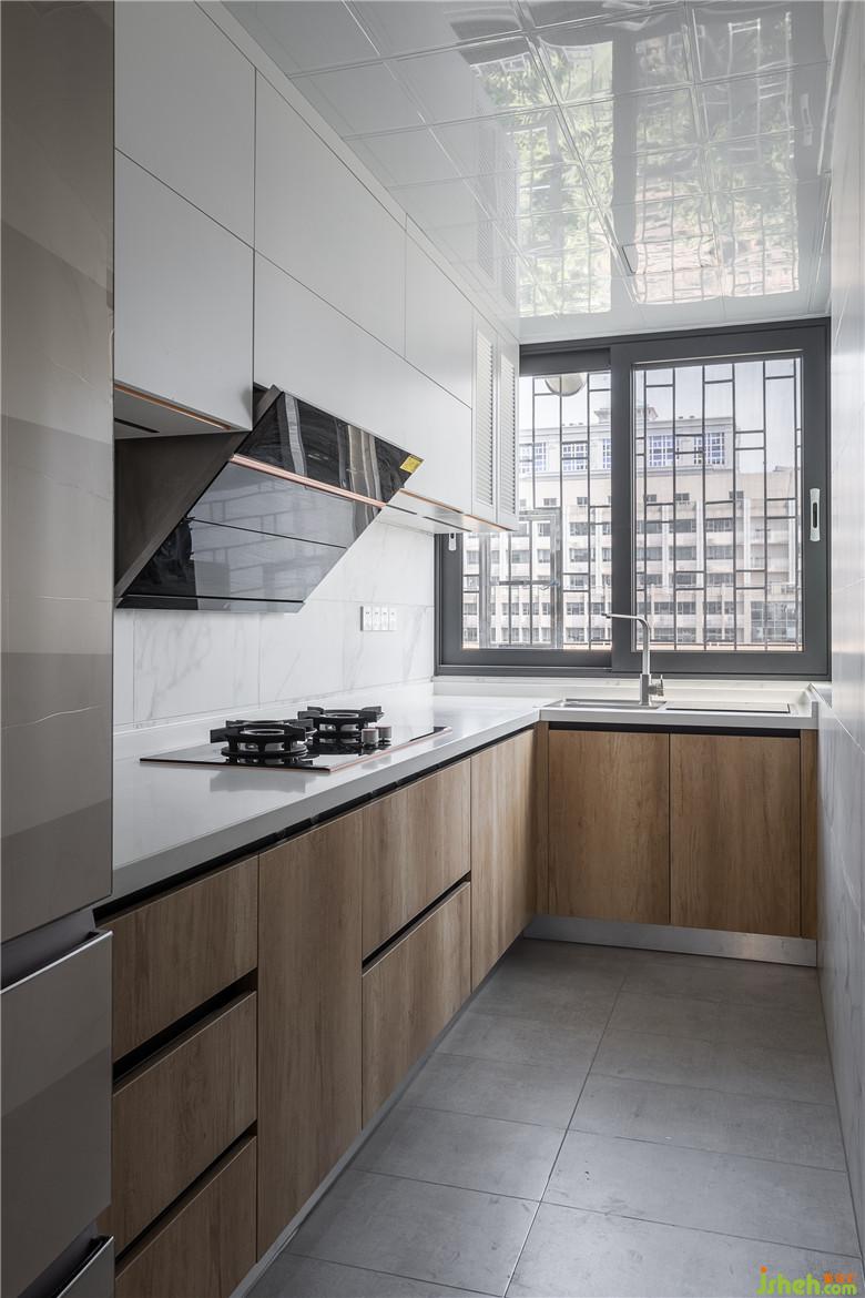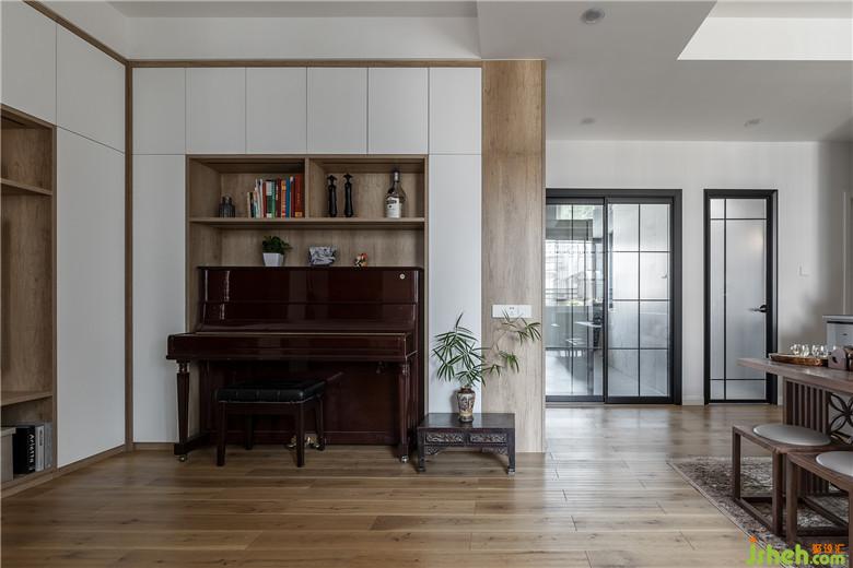 原有整个客厅采光不好,动线不明。现在设计中增加收纳空间外,将从小陪女儿长大的钢琴嵌入至整个L型柜子中,而我们的客餐厅设计将二者功能合二为一,既是客厅空间,又是餐厅,并兼顾了整个茶室会客功能。厨房空间与客厅又有一个很好的通光对流的效果。