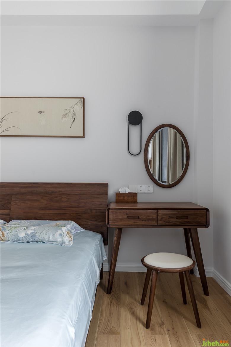 黑胡桃木的家具与米白色的柜子,点缀局部的木色,既不显压抑,也不呆板。女主之前的担心,看到最终的呈现的效果,直道说相信设计师的眼光是没有错的,是她满意的效果。