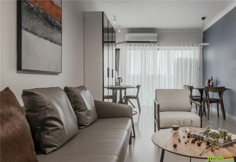 主卧;主卧装修公司选用了浅绿色的墙面,活泼轻快,浅灰的衣柜与床和谐了整体的色调,绿色的使用充满时尚感,也在视觉上提升了舒适度,与灰色中和。