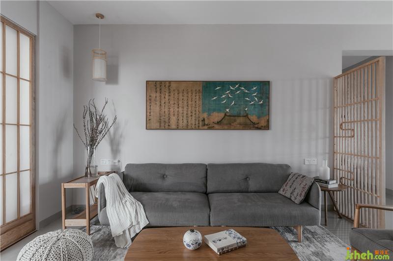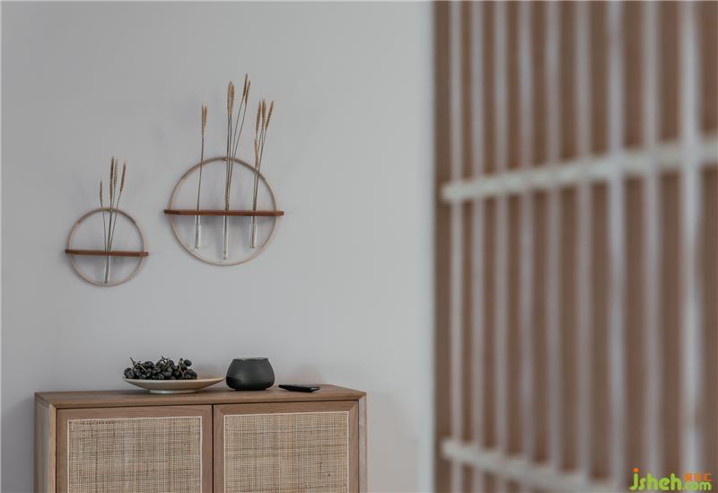 客餐厅做为整个家居空间最常用的互动空间,木质线条的日式格栅,很好的分割了两个空间的动线,让两者既区分又融合,沙发背景浓郁的日式风格的挂画结合成为了简洁空间的点睛之笔,纯净的白色透明玻璃花瓶,配上纯洁的雪柳,软化了原本木质家具带来的硬朗之感,赋予了这个空间温柔优雅的气质
